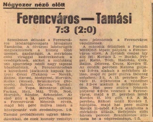 1969.VII.19. Tamási/Fornádi MEDOSZ – Ferencváros 3:7 (edzőmérkőzés)