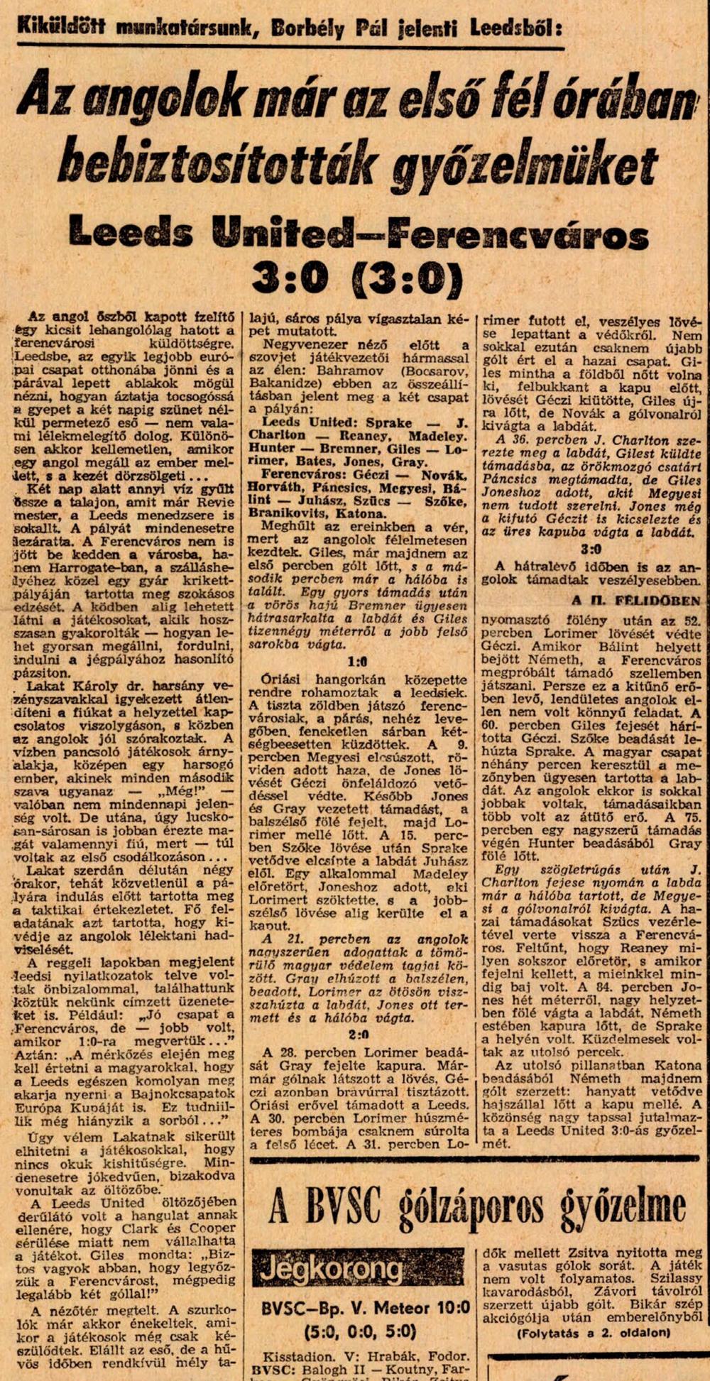 1969.XI.12. BEK, Leeds United – Ferencváros 3:0 Közzétéve: 2009. március 10. kedd | Szerző: K@rcsi Az angolok már az első félórában bebiztosították győzelmüket 19691112_LeedsUnited_mf Vélemény, hozzászólás? Válasz megszakításaAz e-mail címet nem tesszük közzé. A kötelező mezőket * karakterrel jelöltük Hozzászólás * Név * E-mail cím * Honlap Δ