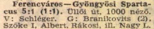 1970.V.13. Ferencváros – Gyöngyösi Spartacus 5:1 (edzőmérkőzés)