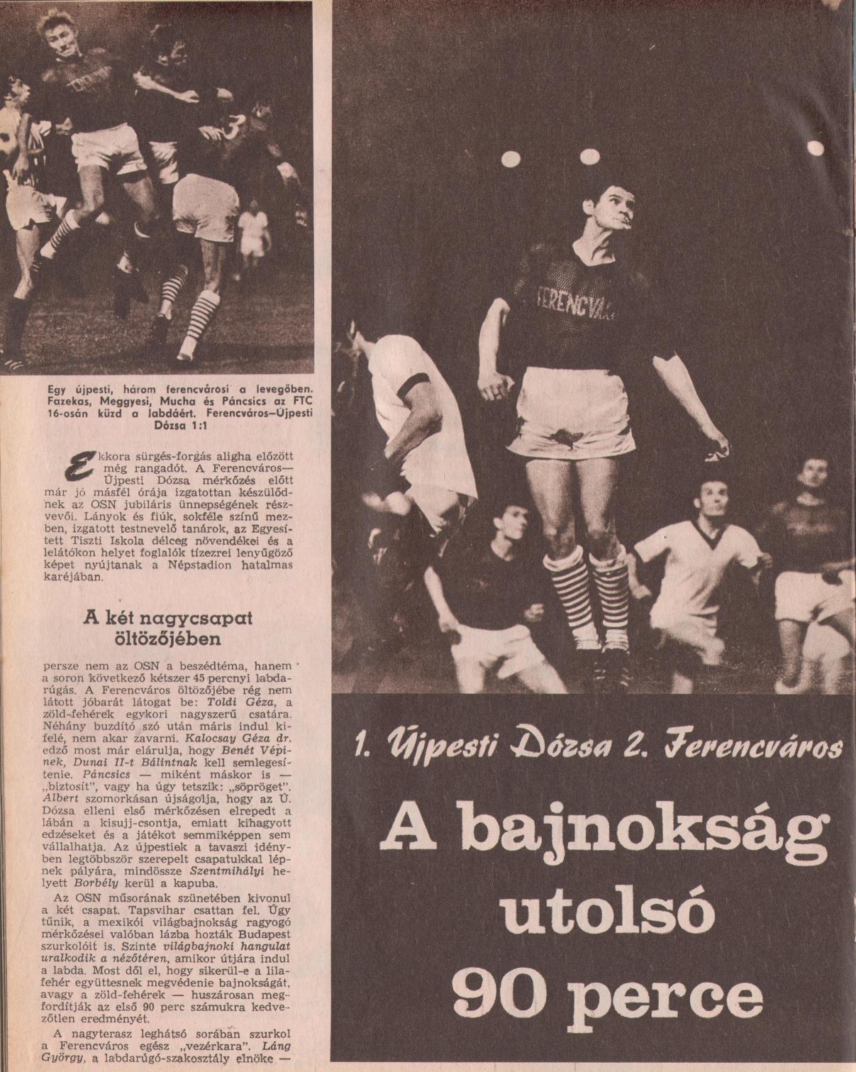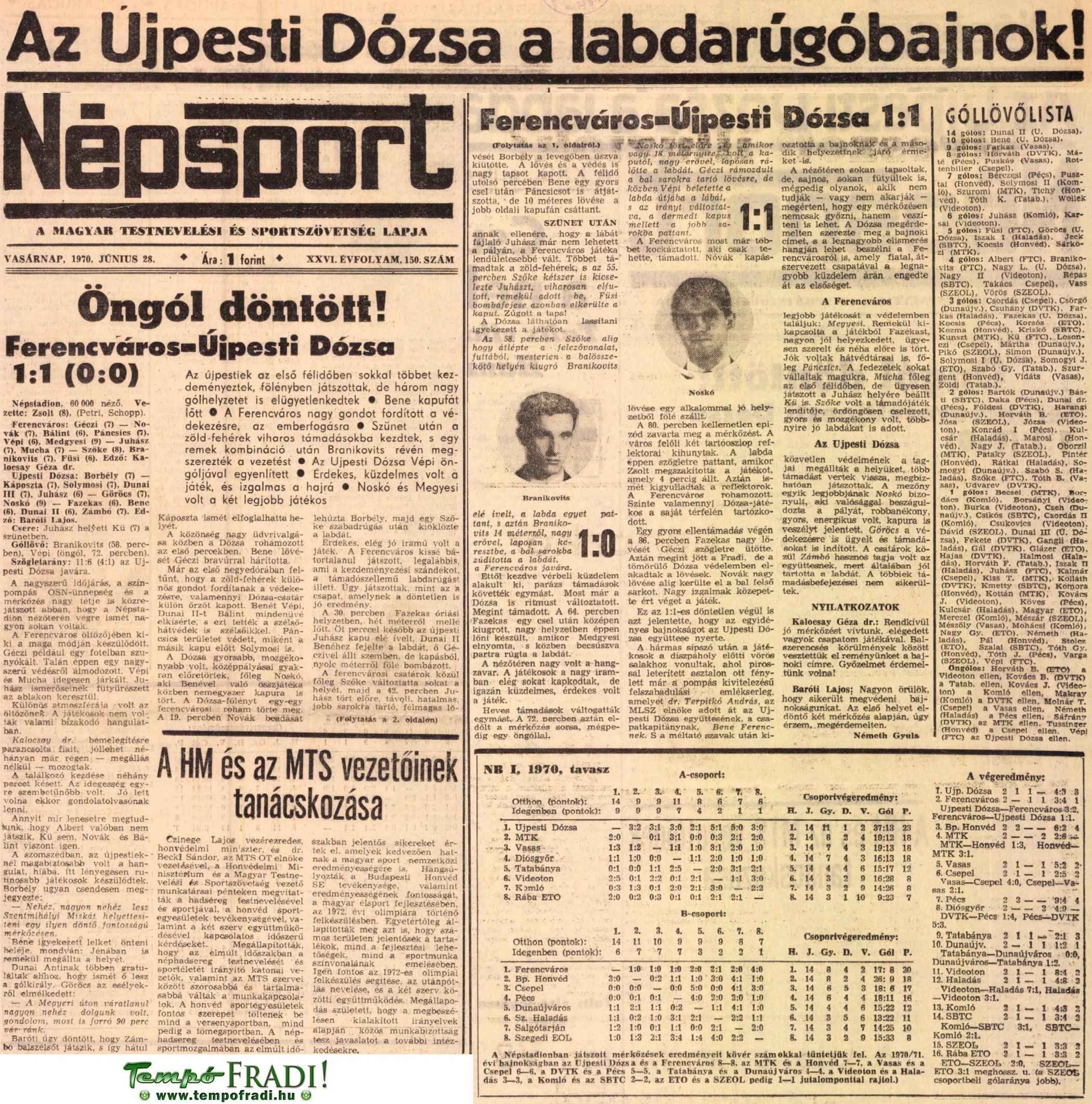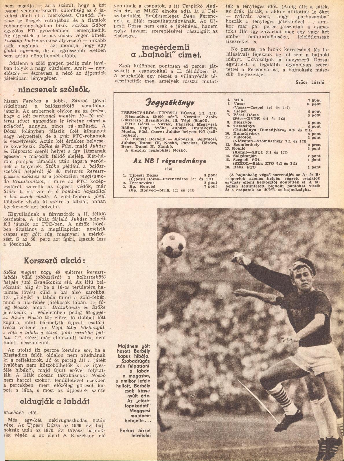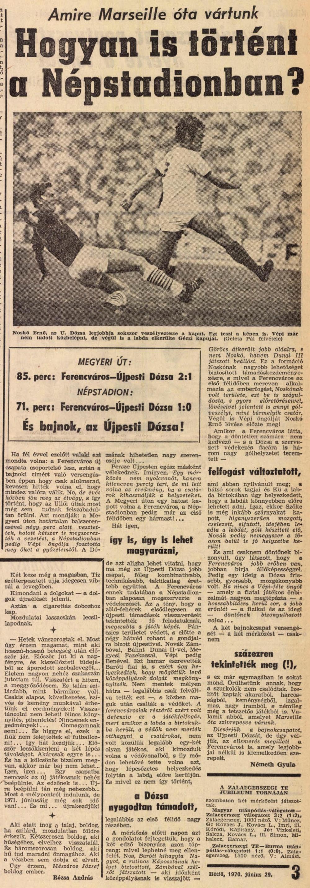 « 1970.VI.23. MNK, Ceglédi MEDOSZ – Ferencváros 0:3 1970.VI.28. Soltvadkerti TE – Ferencváros 1:7 (edzőmérkőzés) »