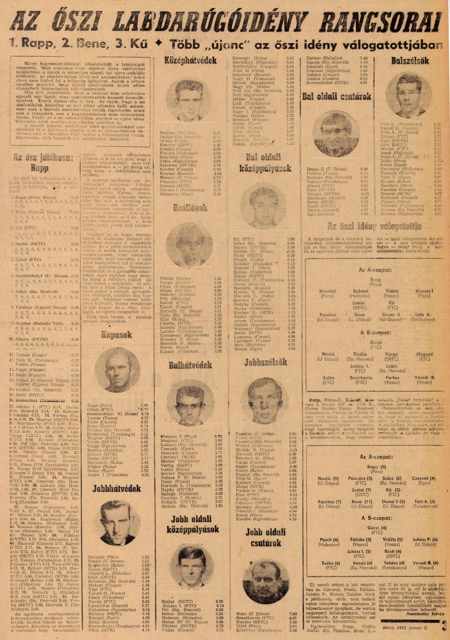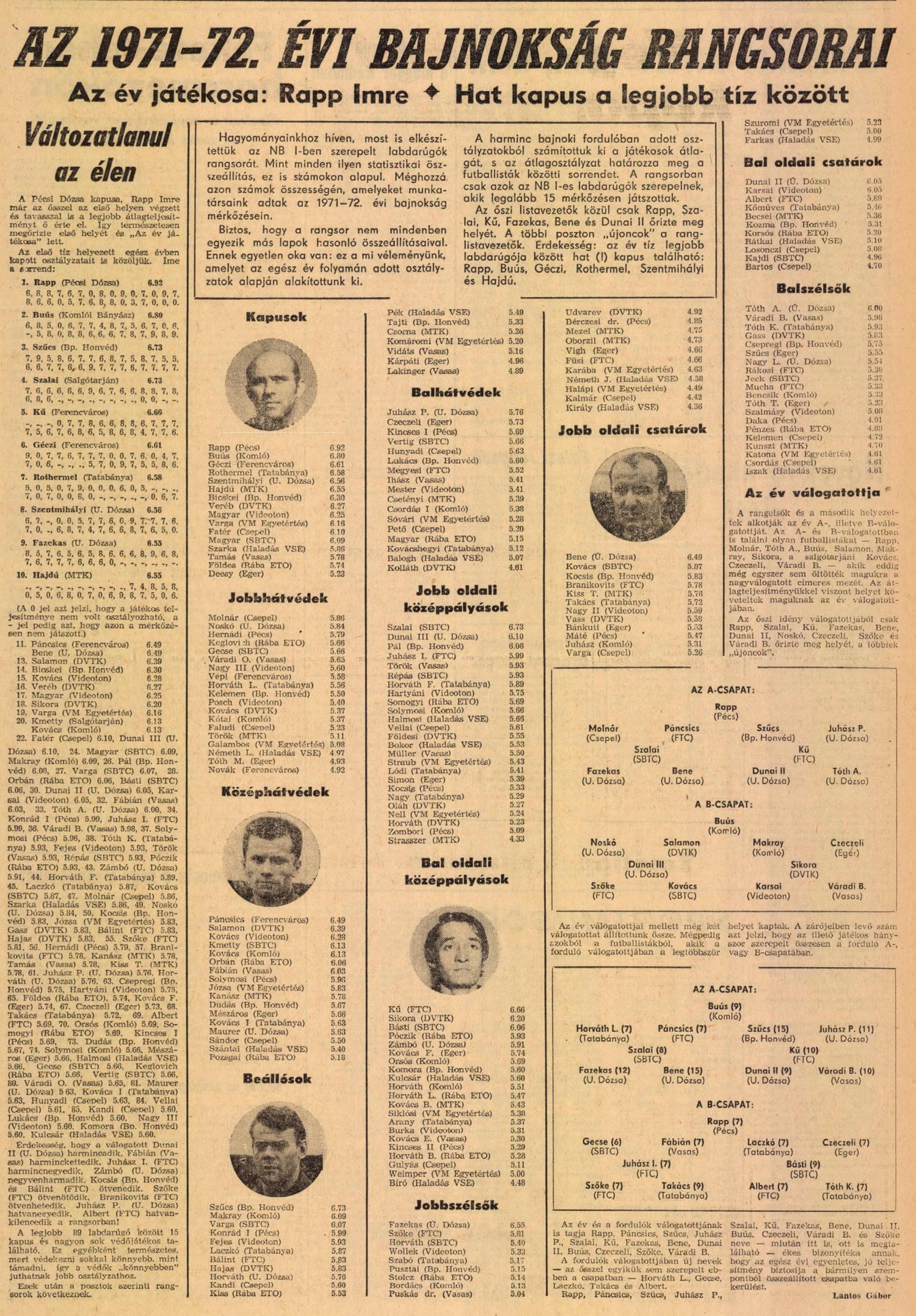 Kategória: Posztonkénti rangsor (NS) | Címke: 1971/72, Albert Flórián, Bálint László, Branikovits László, Füsi János, Géczi István dr., Horváth László, Juhász István dr., Kű Lajos, Megyesi István, Mucha József, Novák Dezső, Páncsics Miklós dr., posztonkénti rangsor, Rákosi Gyula, Szőke István, Szűcs Lajos (fedezet), Vépi Péter