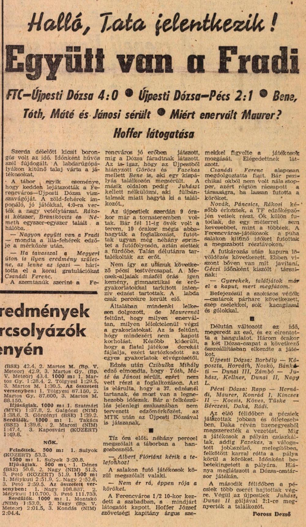 Kategória: 1970/71 | Címke: 1970/71, edzőmérkőzés, Újpest (Újpesti Dózsa; Bp. Dózsa; UTE)