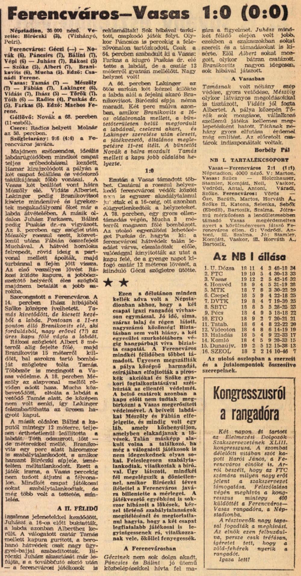 1971.III.27. Ferencváros – Vasas 1:0