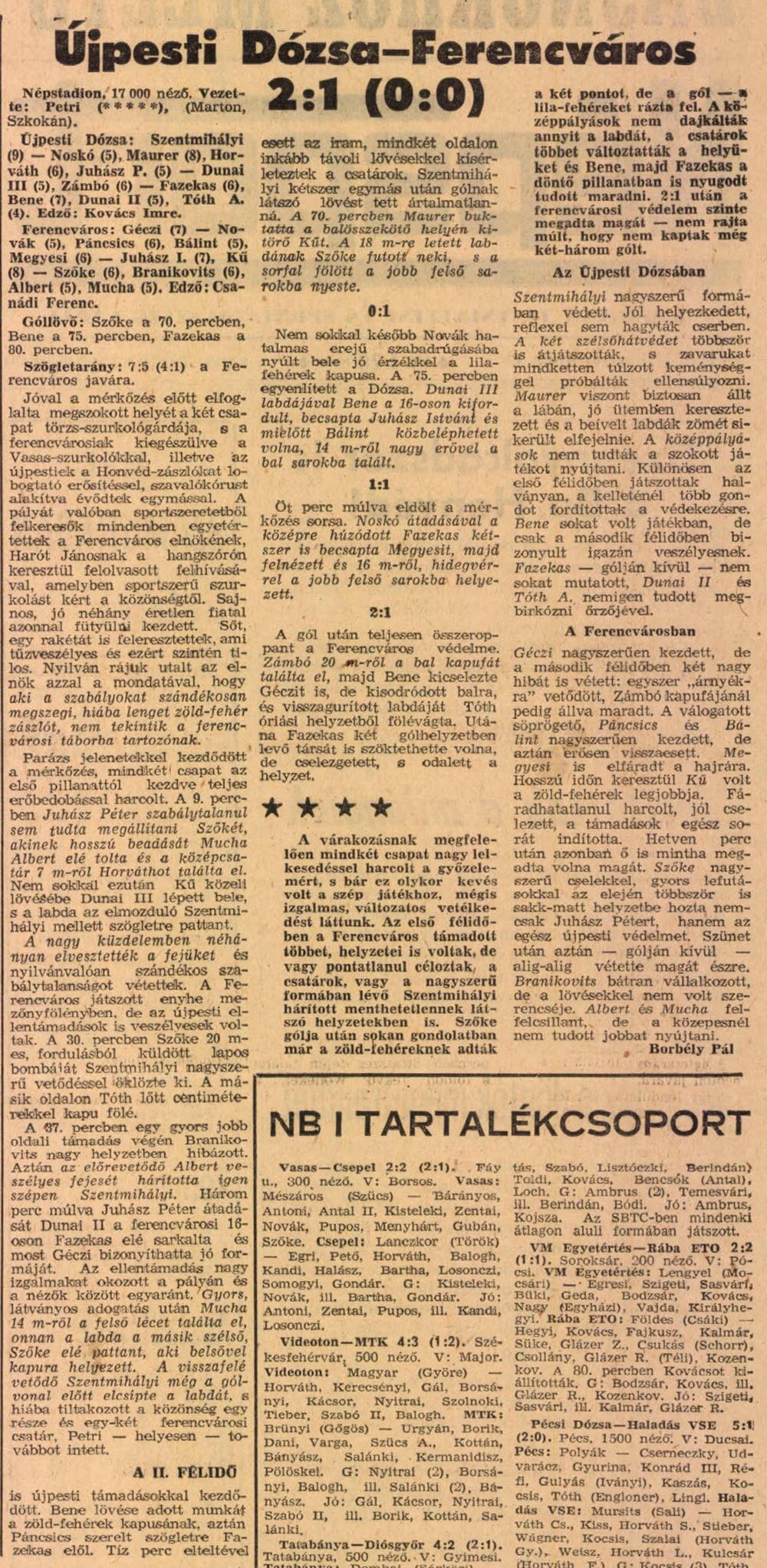1971.XI.7. Ferencváros – Újpesti Dózsa 1:2