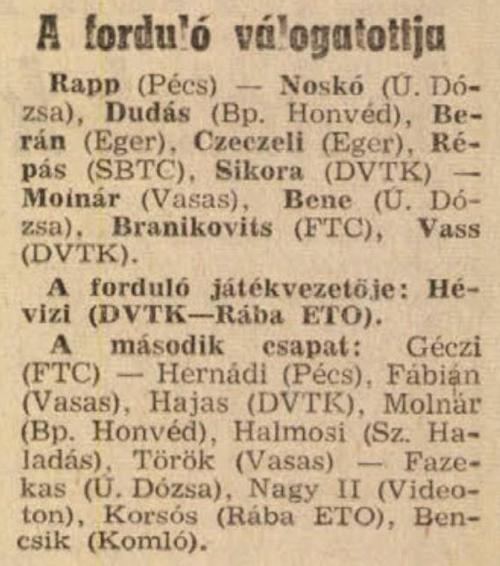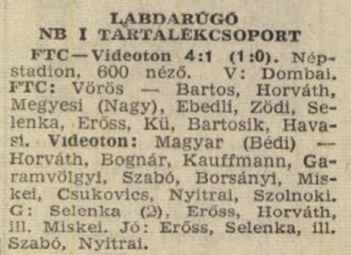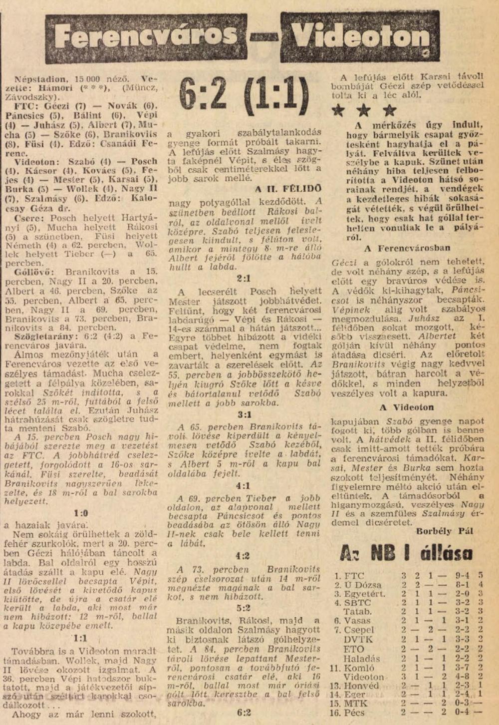 1971.VIII.19. Ferencváros – Videoton 6:2
