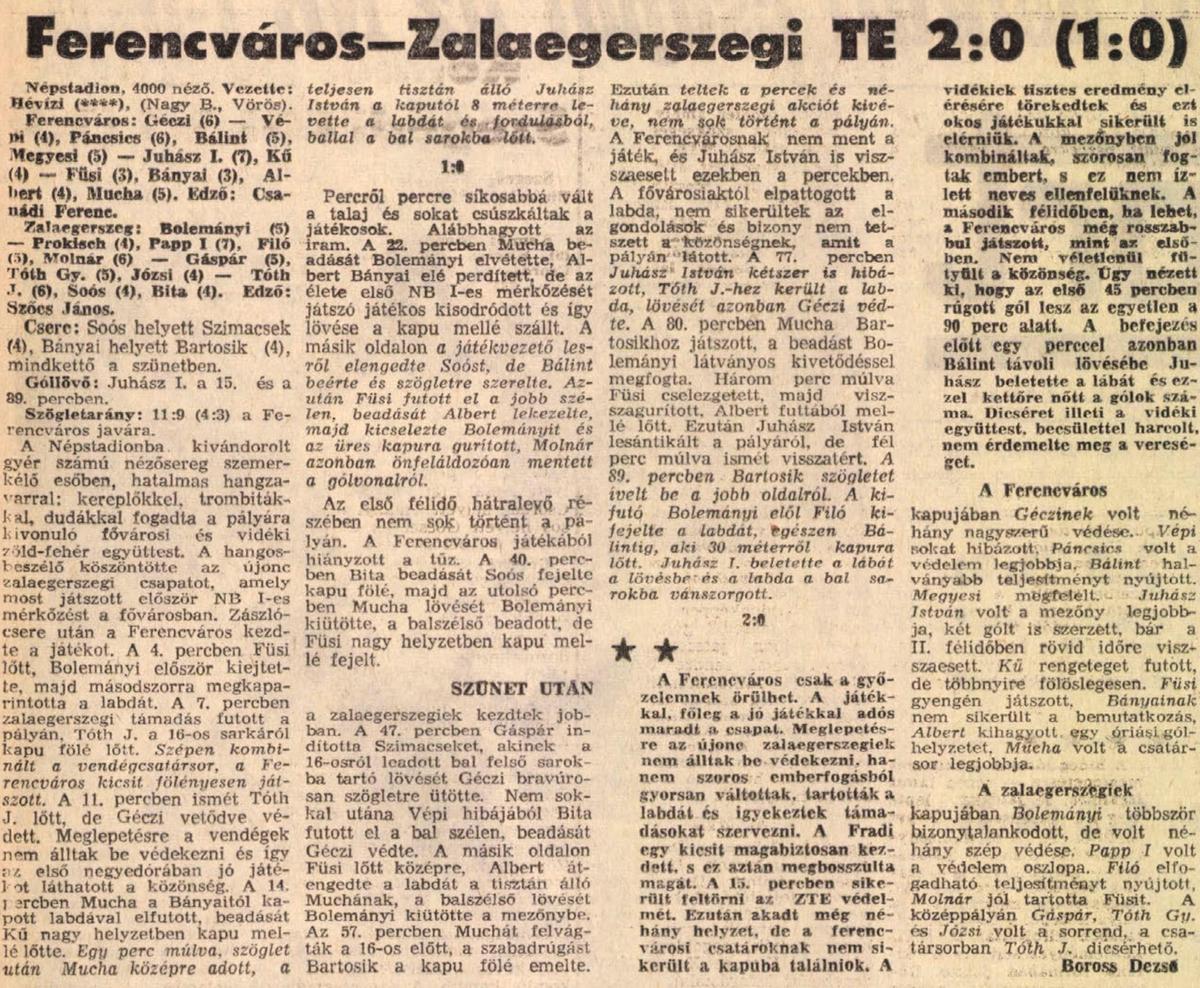 1972.X.8. Ferencváros – ZTE 2:0