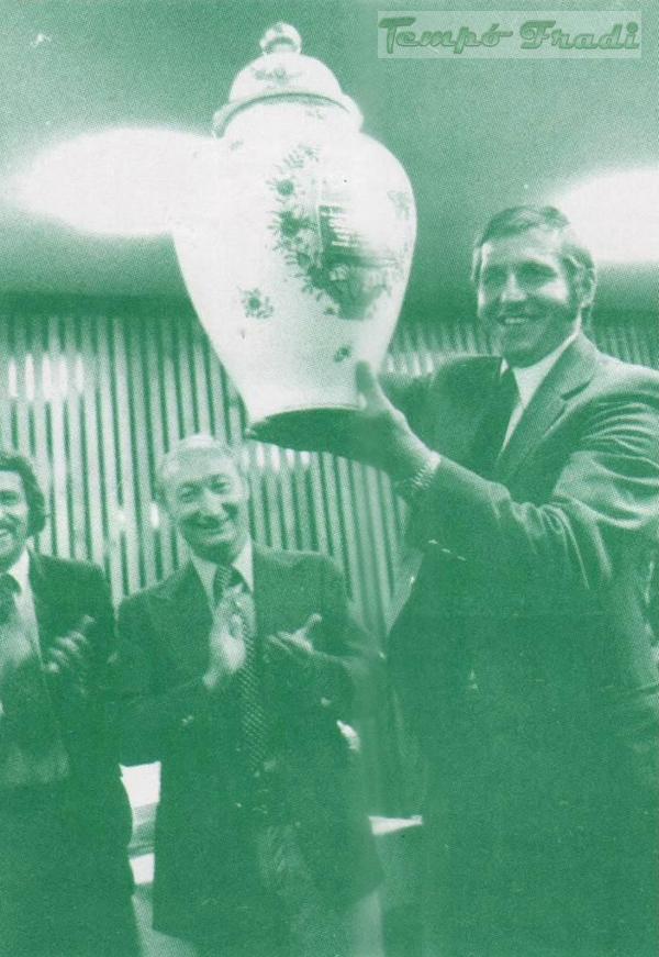 A nagy eső miatt a klubház tanácstermében volt a díjátadás. A szép trófeát Géczi István, az akkori csapatkapitány már „civilben” vette át.