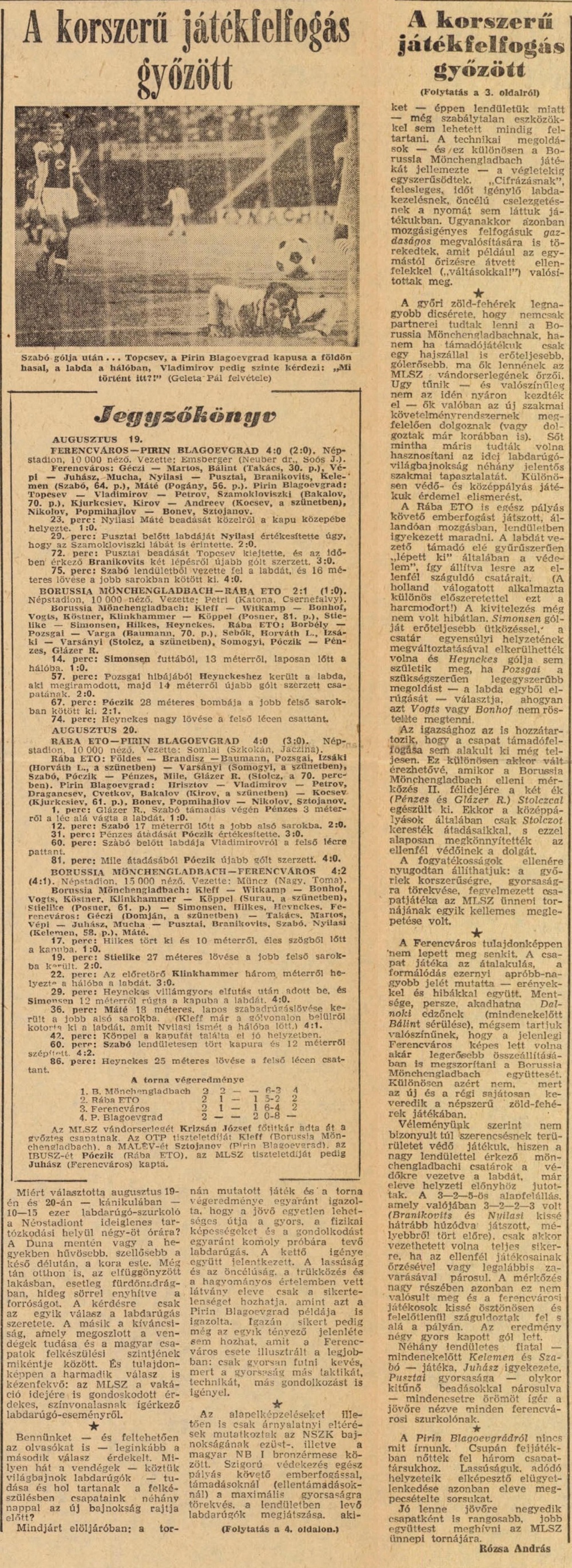1974.VIII.19. MLSZ serleg, Ferencváros – Pirin Blageovgrad 4:0