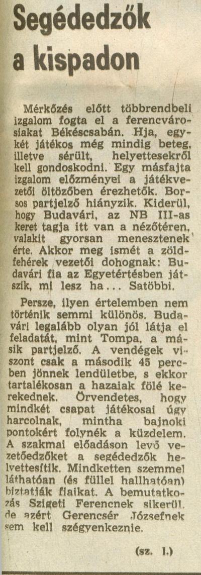 1974.XII.14. Téli kupa, Békéscsaba – Ferencváros 1:1