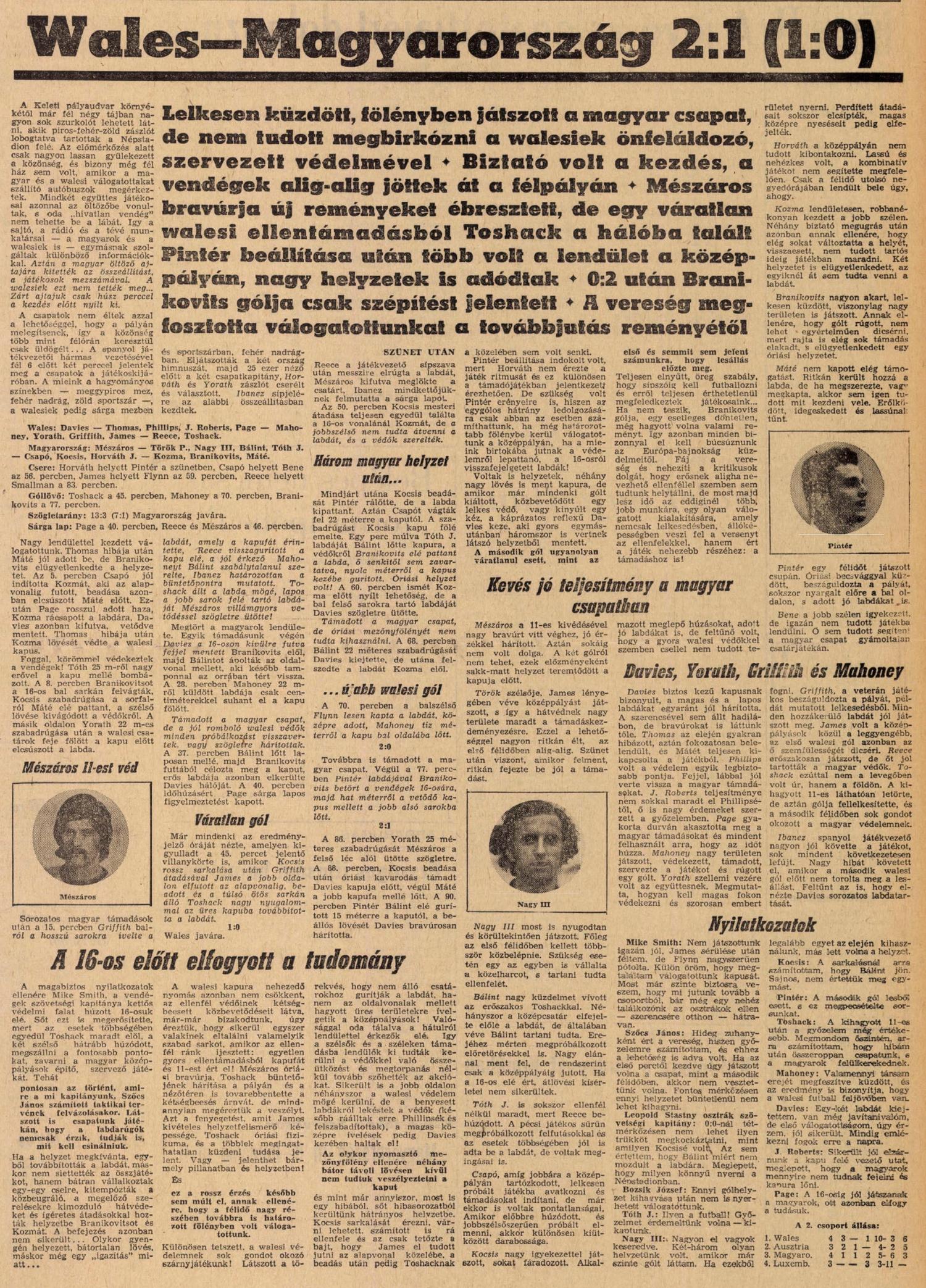 1975.IV.16. EB selejtező, Magyarország – Wales 1:2
