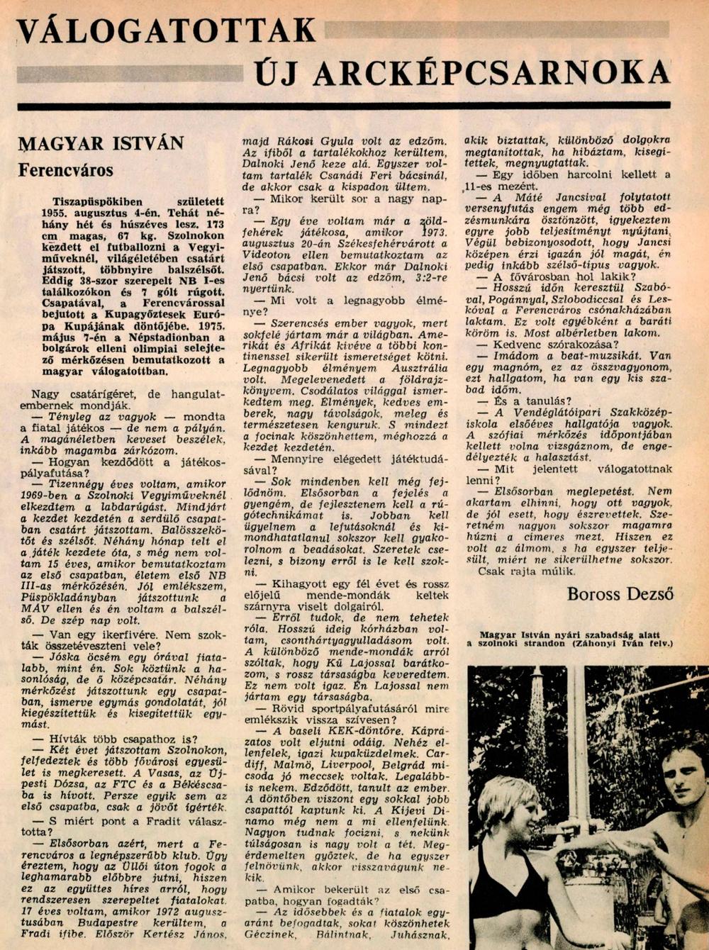 Csere: Fazekas helyett Pintér (Bp. Honvéd, 53.), Magyar helyett Fekete (Ú. Dózsa, 66.)