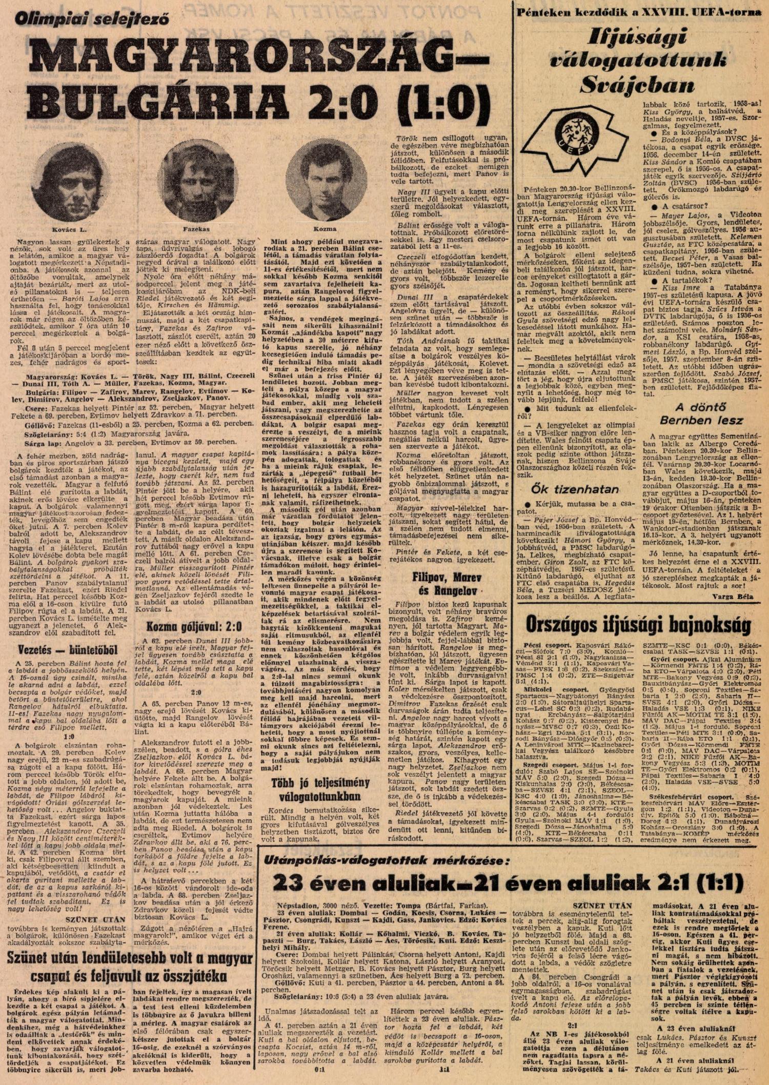 1975.V.7. Olimpiai selejtező, Magyarország – Bulgária 2:0