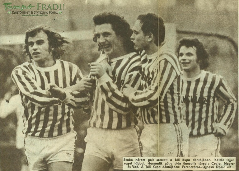 Nyilasi Tibiről már többször írtam, Zoliról meg még fogok, ráadásul itt nem a kedvenceimről kell értekeznem, hanem arról a gyönyörűséges tényről, hogy 1975. december 14-én, a Téli Kupa döntőjében négyet vágtunk a Dózsának. Persze az sem mellékes, hogy ezzel megnyertük a tornát. De vajon milyen kupát is nyertünk?