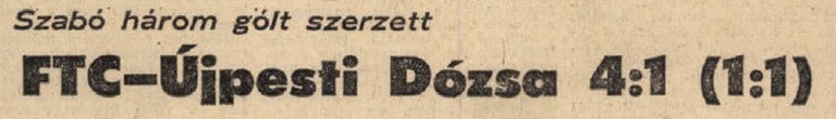 A méltatlanul elfeledett csatár pedig nem más, mint Szabó Feri, pontosabban a lexikonunk szerint Szabó II Ferenc. Precízen megszámoltam, a Fradi fennállása során 11 Szabó játszott nálunk, ebből ketten voltak Ferencek (még szerencse, hogyan nézne ki a Szabó XI Ferenc név?), az egyik az ötvenes években játszott a pálya jobb oldalán, volt hátvéd, és csatár is, a másik Feri meg hármat vágott az Dózsának, mellesleg hat évet töltött el a Fradiban, nyert két bajnokságot, és 108 tétmérkőzésen 47 gólt szerzett!