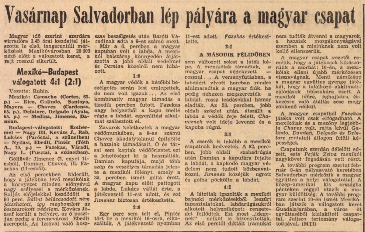 1976.II.4. Mexikó – Budapest válogatott 4:1