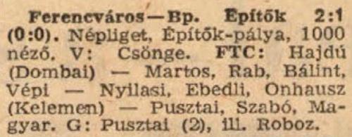 1976.VIII.4. Bp. Építők – Ferencváros 1-2 (edzőmérkőzés)