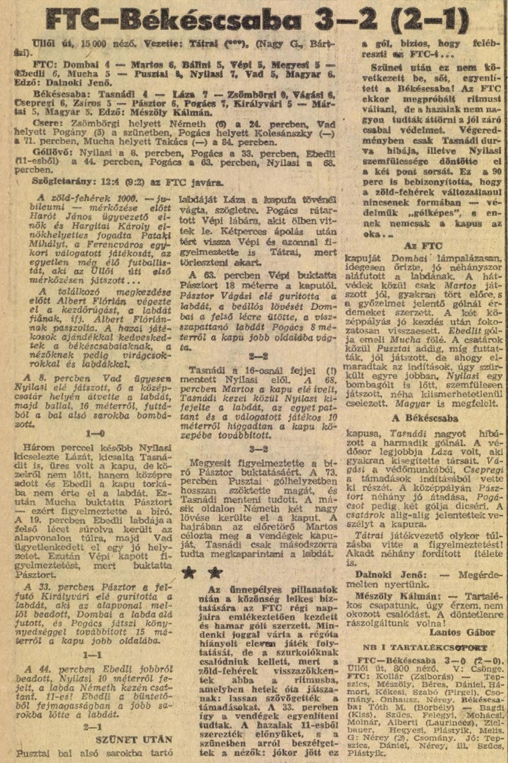 1977.V.11. Ferencváros – Békéscsaba 3-2