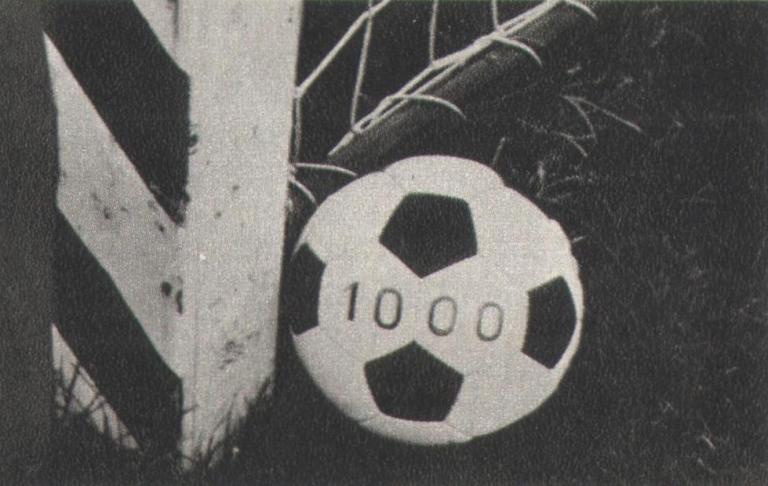 - Egy egyszerű labda. A fradistáknak mégis nevezetes emlék, archívumunknak nagyon becses tárgyi emléke. Az FTC 1000. mérkőzését ezzel a labdával játszotta, de csak egy félidőn át! A második játékrészben „használt” futtball Dalnoki Jenő edzőnk híres gyűjteményét gazdagítja. Még egy 1000-es labdára is szert tettünk. Az FTC 1000. Üllői úti mérkőzésére, a Békéscsaba elleni találkozóra is számokkal ellátott labdával állt ki csapatunk. Pozsonyi Lajos fényképészünk bravúros felvételén játék közben is jól látható a labdán az 1000-es szám.