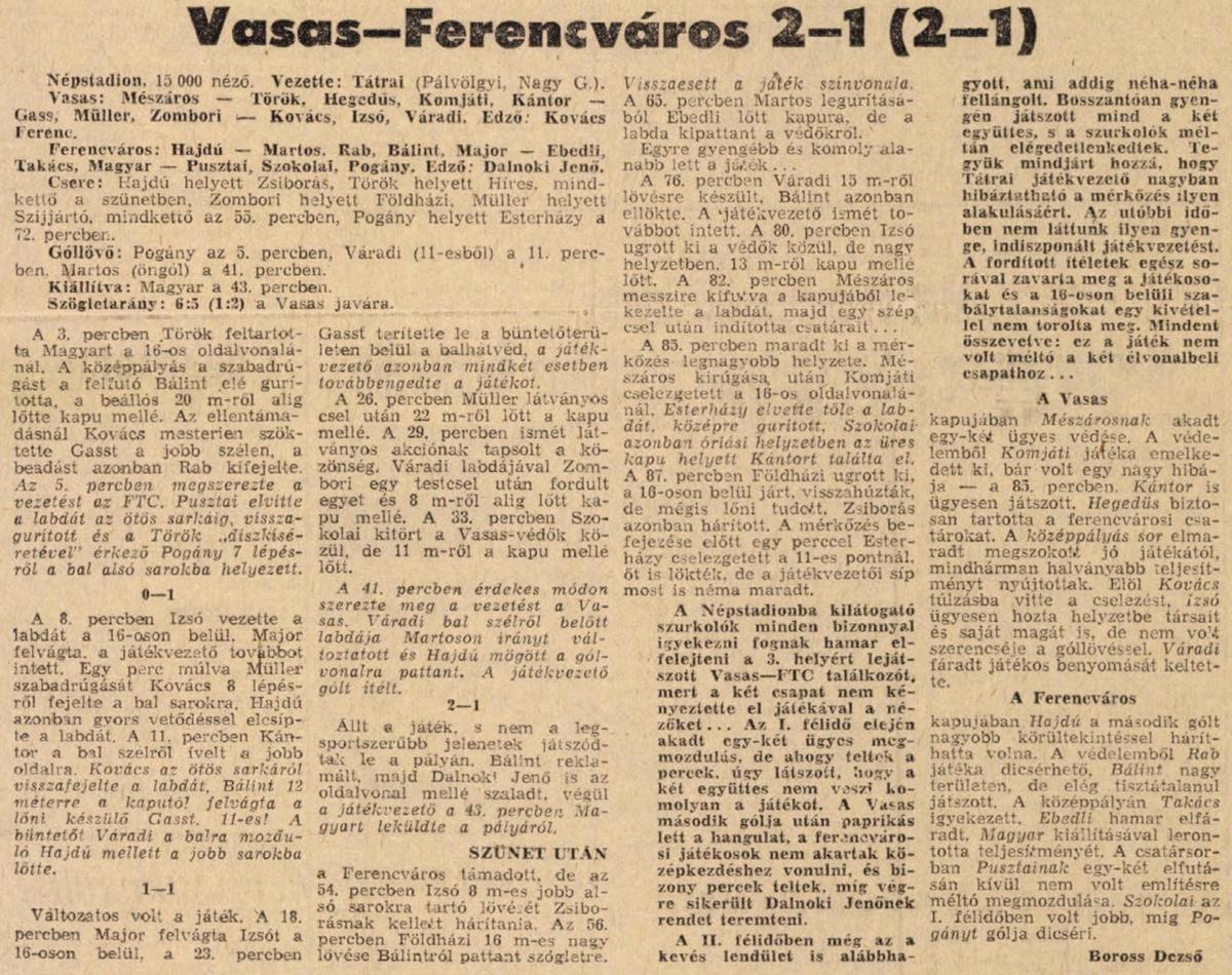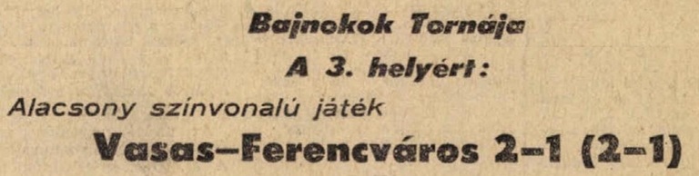 1977.VIII.13. Bajnokok tornája, Vasas – Ferencváros 2-1