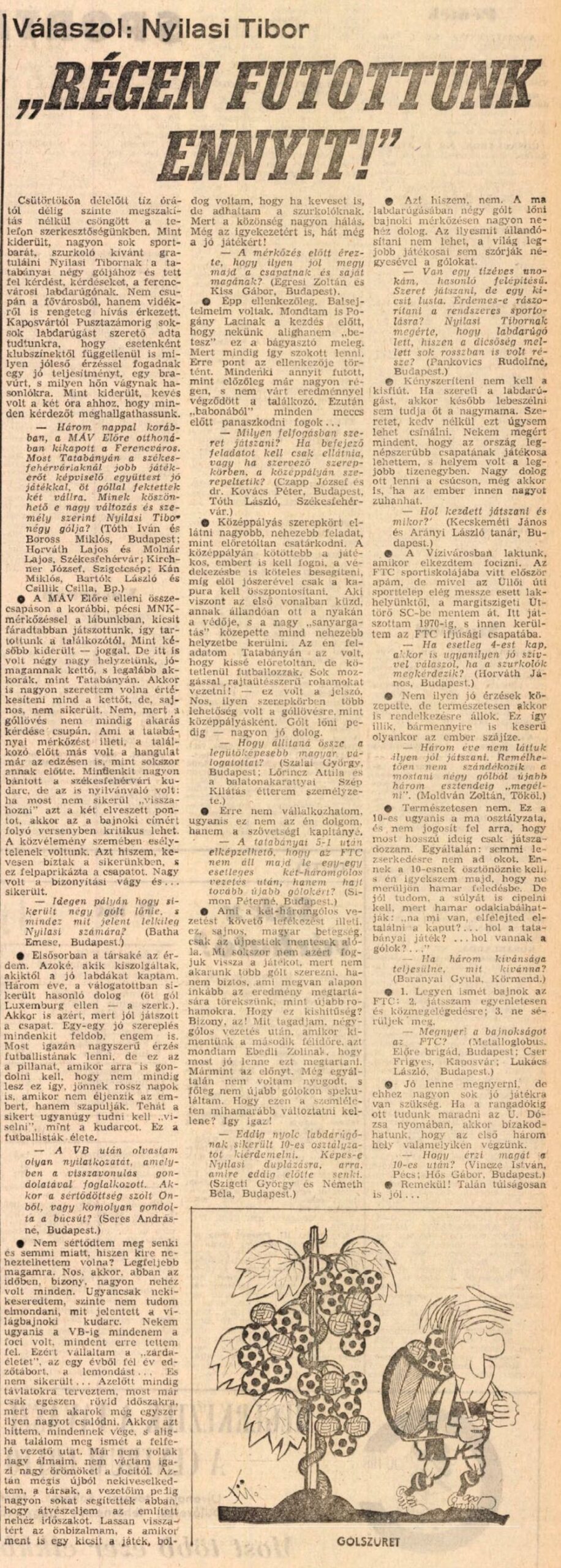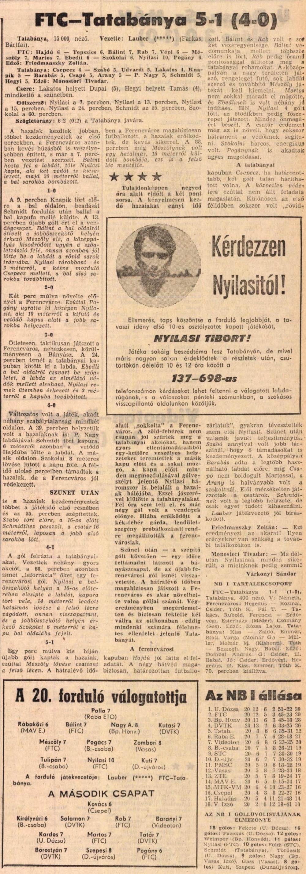 1979.III.14. Tatabánya – Ferencváros 1-5 Közzétéve: 2009. március 20. péntek | Szerző: K@rcsi Állnak (balról): Tepszics, Rab, Mészöly P., Bálint, Hajdú J., Vépi. Elől: Nyilasi, Ebedli, Martos, Szokolai, Pogány Pogány akcióban … Pogány és Csepecz párharca Vélemény, hozzászólás? Válasz megszakításaAz e-mail címet nem tesszük közzé. A kötelező mezőket * karakterrel jelöltük Hozzászólás * Név * E-mail cím * Honlap Δ