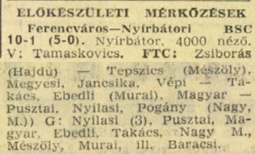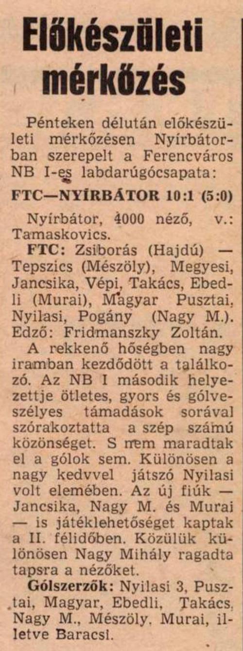 1979.VIII.3. Nyírbátori BSC – Ferencváros 1-10 (edzőmérkőzés)