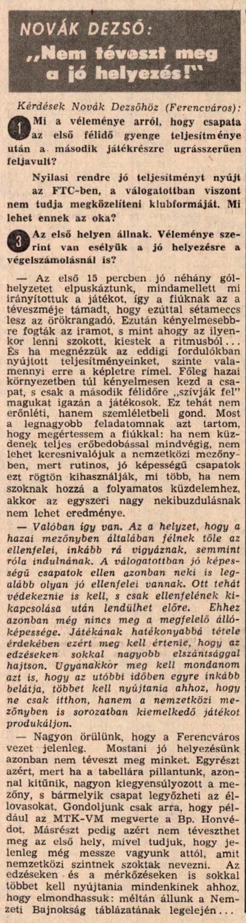 Így aztán az MTK-VM-nek fel kellett adnia azt a taktikáját, hogy szoros védekezésből egyéni kezdeményezéseken alapuló ellentámadásokat vezet. Fel kellett vennie a kesztyűt a ferencvárosi vezetés miatt, ebben pedig sokáig a zöld-fehérek bizonyultak jobbnak. Sőt, egyes pillanatokban úgy látszott, hogy osztálykülönbség van a két csapat között.