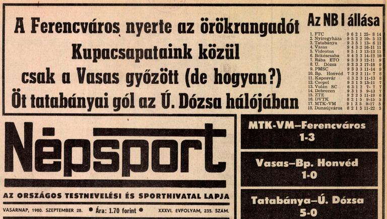 1980.IX.27. MTK-VM – Ferencváros 1-3