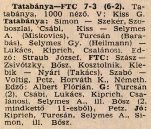 FTC: Kakas – Horváth, Judik, Rab, Major – Takács, Ebedli, Mucha – Murai, Nyilasi, Pogány