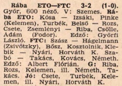 A 71. percben váratlanul szépített a Ferencváros. Mucha betört a győri kapu előterébe amikor Csonka elbuktatta. 11-es! A büntetőt Szepesi küldte a bal alsó sarokba, 2:1.