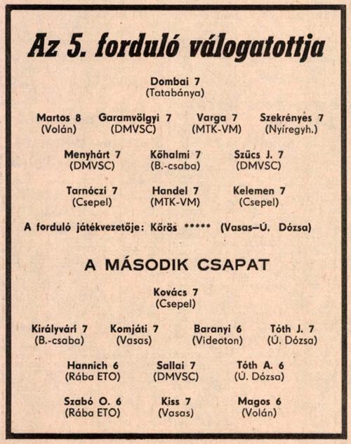 G: Szabó, Hannich, ill. Szepesi, Nyilasi
