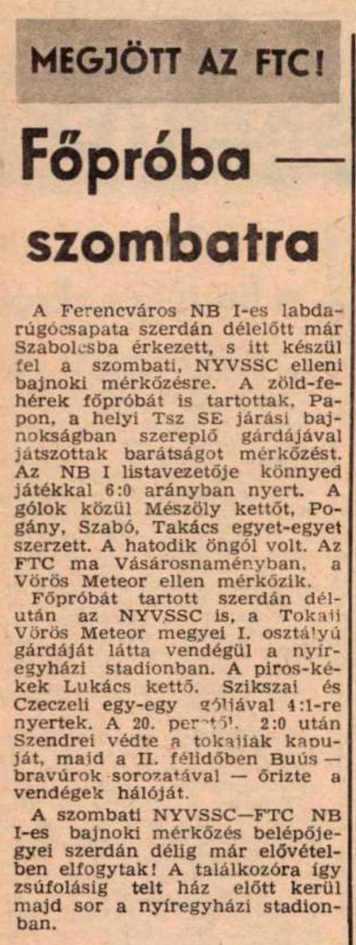 1980.X.29. Papi TSZ – Ferencváros 0-6 (edzőmérkőzés)