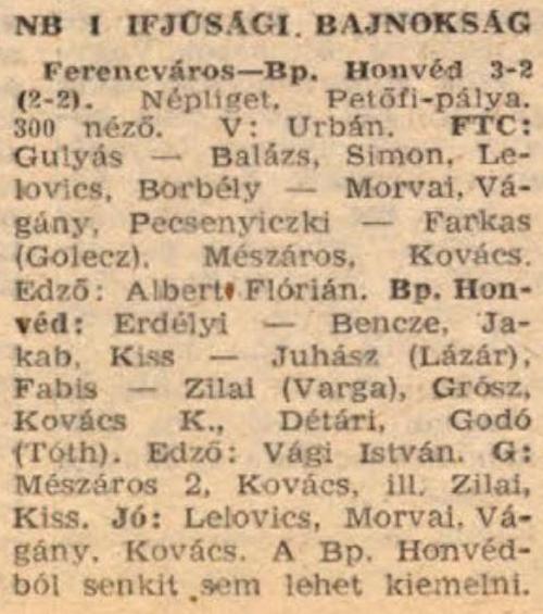 Több tényező eredményezte a vendégek sikeréti A legfontosabbak … A Honvéd védői jobbnak bizonyultak emberfogásban, a rájuk bízott támadók semlegesítésében. A ferencvárosi védők emellett gyakran bizonytalankodtak, olykor — főleg Beles — lassúak voltak. A Honvéd középpályásai és támadói jóval hamarabb megtalálták egymást a labdával, s a piros-fehérek — bár ők is jócskán hagytak ki helyzeteket — jobban ki tudták használni a kínálkozó lehetőségeket.