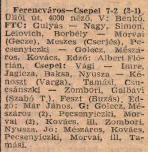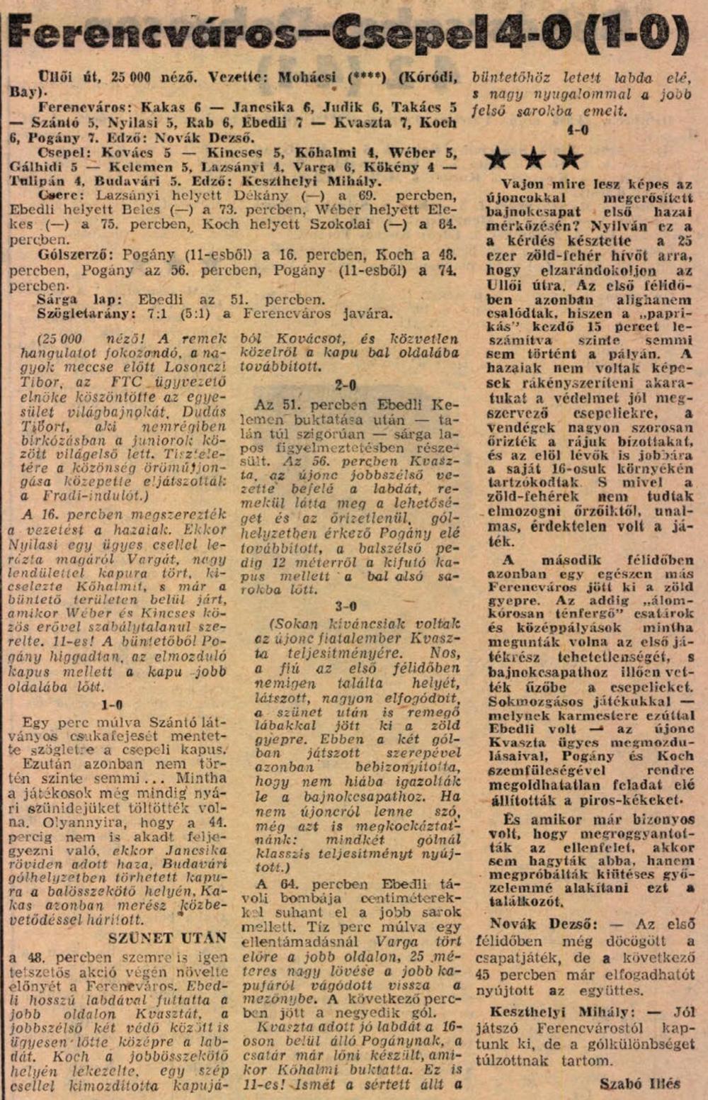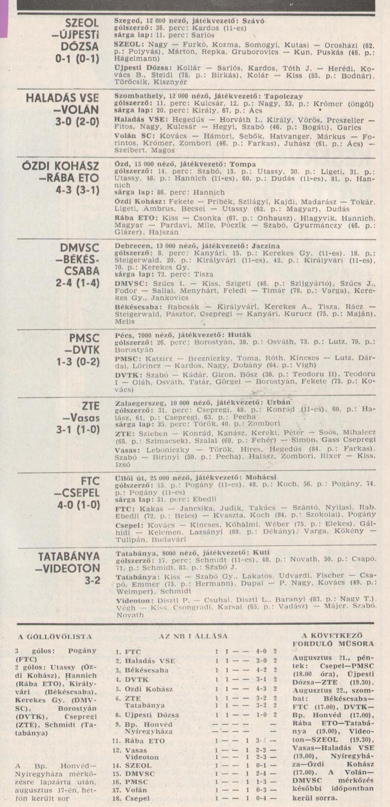 1981.VIII.15. Ferencváros – Csepel 4-0