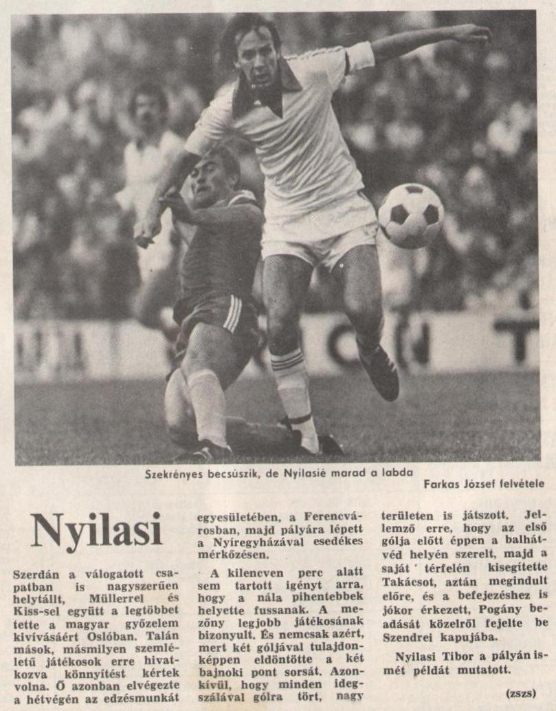 Amikor megláttam, hogy szerkesztőtársam a következő bajnokink muzeális beharangozójára egy 1981-es mérkőzésről szóló újságot „szerzett” meg, egyből az jutott eszembe, hogy ez biztos nem csak a véletlen műve. Mikor utána néztem a Nyíregyháza elleni bajnoki múltunknak, egyből rájöttem, hogy már az komoly fegyverténynek számított, hogy sikerült a könyvtárak mélyéből egy olyan újságot elővadászni, mely a pénteki ellenfelünk egyik régebbi mérkőzéséről szól.