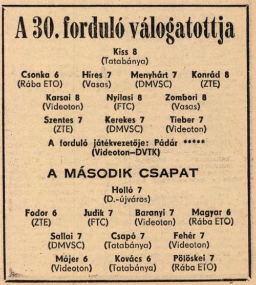FTC: Kakas — Jancsika, Judik, Rab, Takács — Ebedli, Nyilasi, Major — Mörtel, Szokolai, Pogány