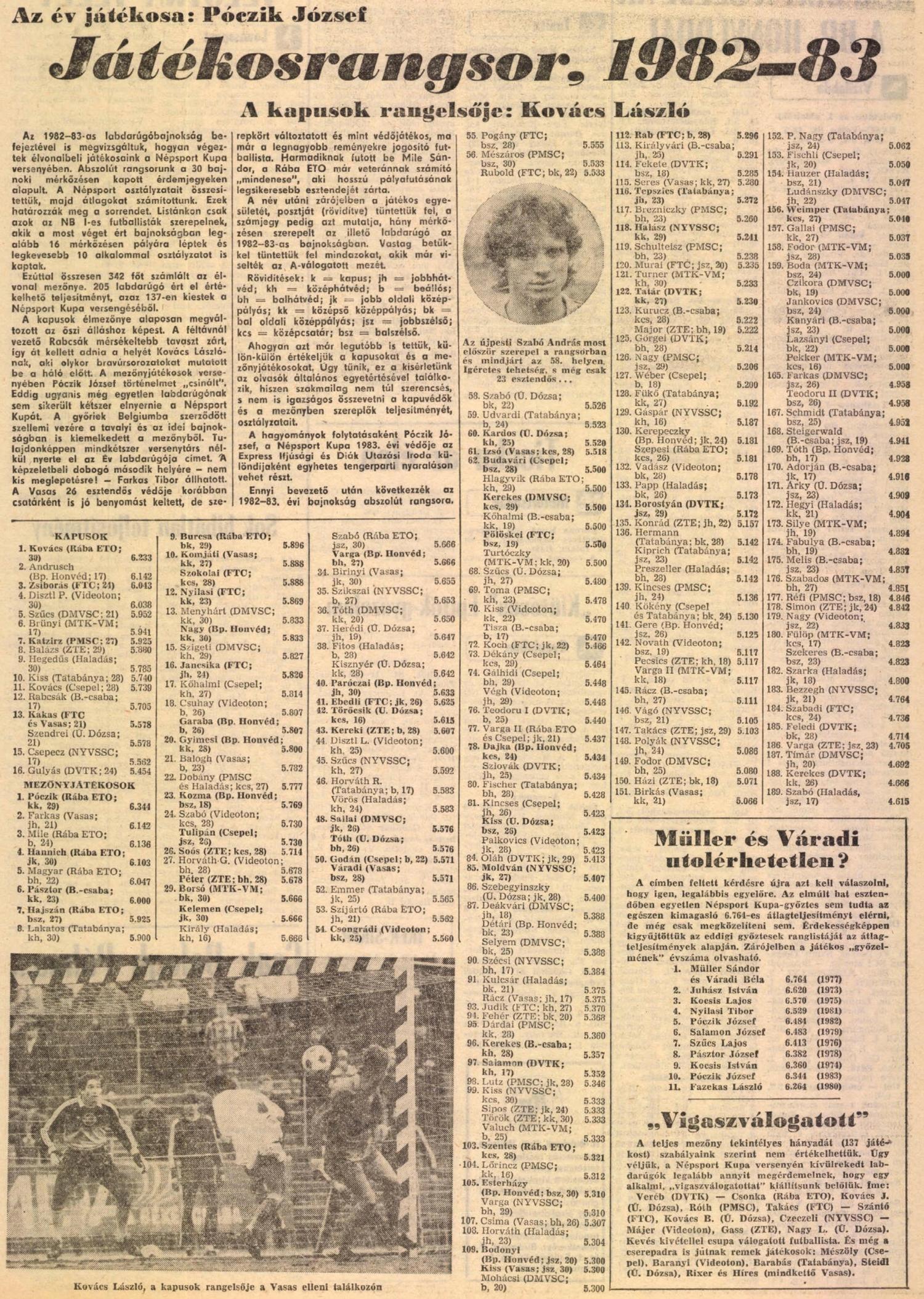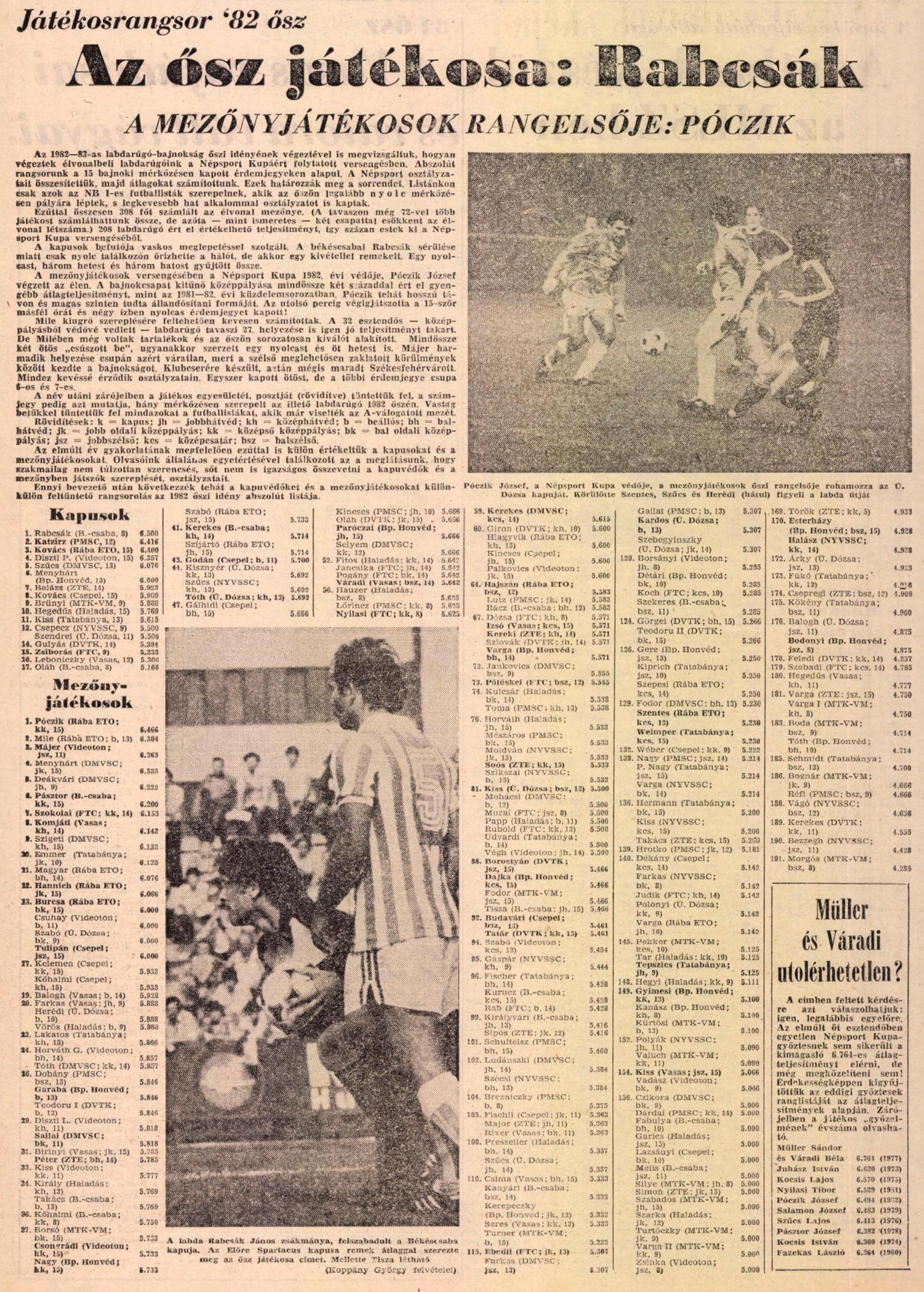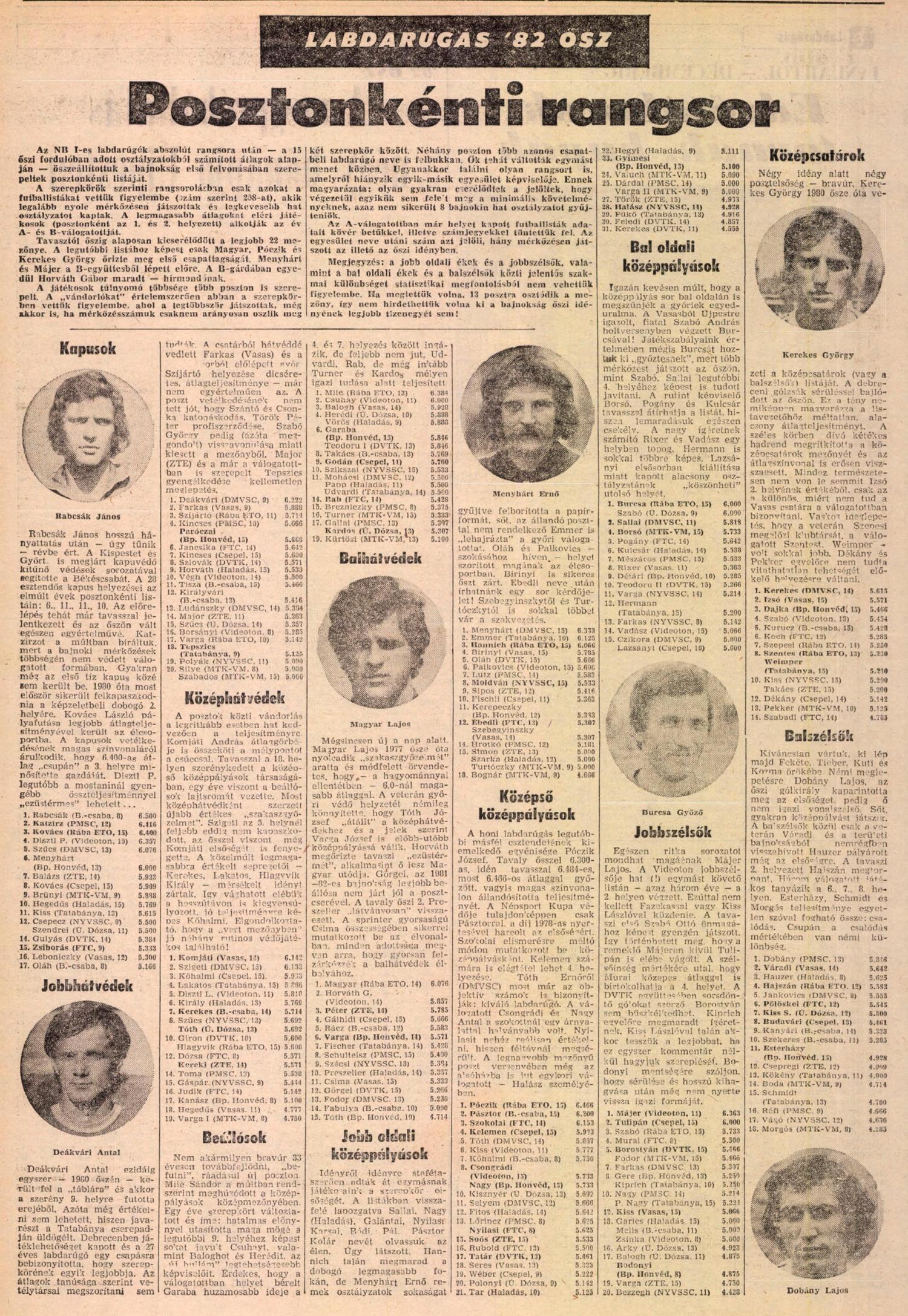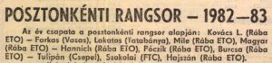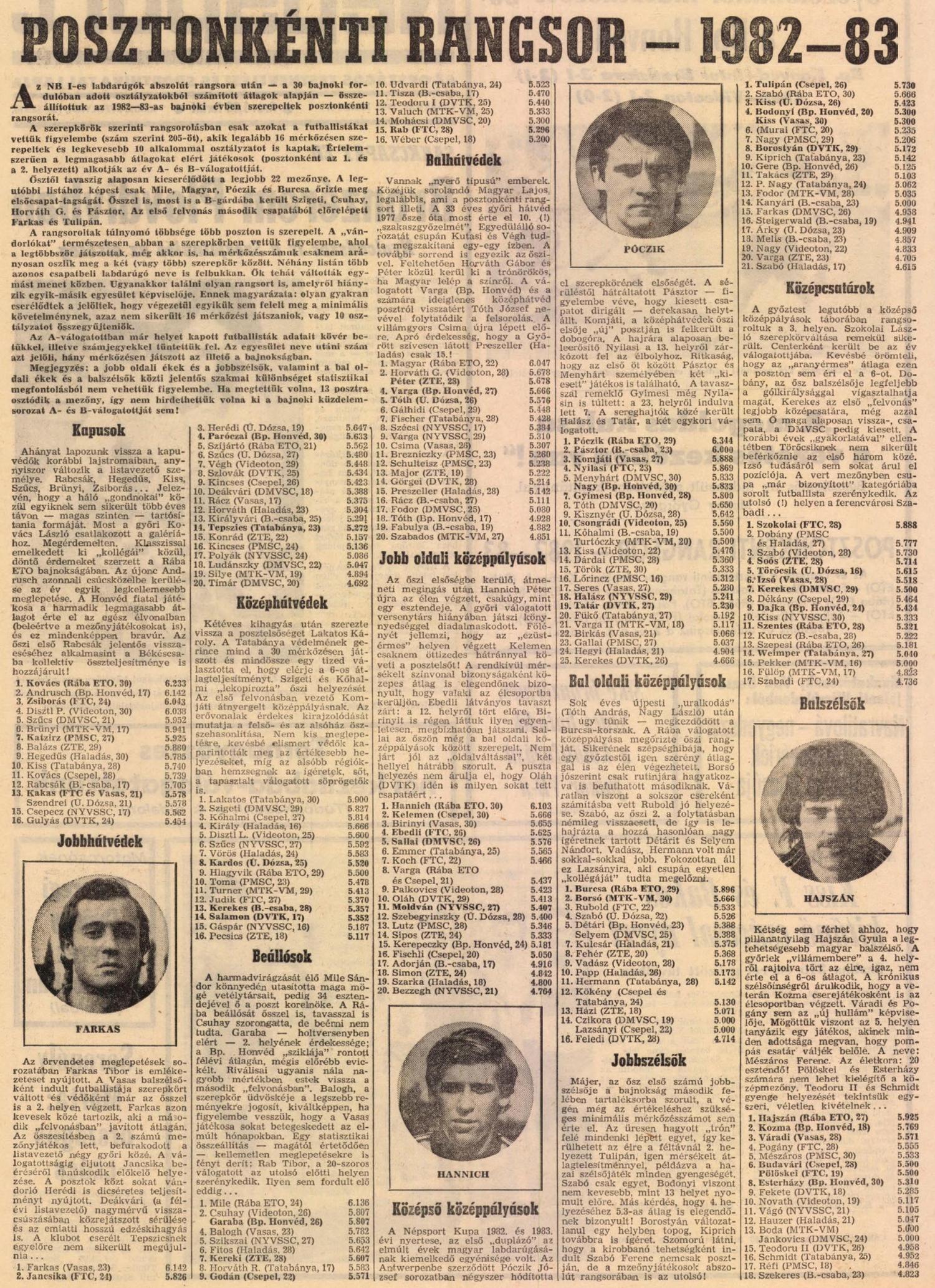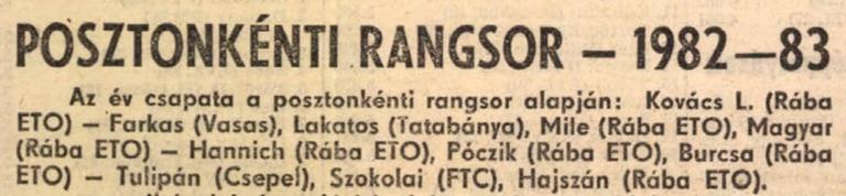 Kategória: Posztonkénti rangsor (NS) | Címke: 1982/83, Dózsa Attila, Ebedli Zoltán, Jancsika Károly, Judik Péter, Kakas László, Kerekes György, Koch Róbert, Murai Sándor, Nyilasi Tibor, Pogány László, Pölöskei Gábor, posztonkénti rangsor, Rab Tibor, Rubold Péter, Szabadi László, Szokolai László, Zsiborás Gábor