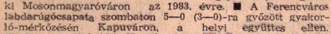 1983.I.22. Kapuvár – Ferencváros 0-5 (edzőmérkőzés)