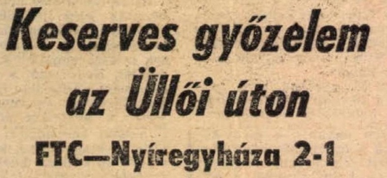 A Nyíregyháza elleni mérkőzés sem indult túl jól, hiszen a 13. percben egy gyors ellentámadás után vezetést szereztek a vendégek, akik ezzel el is lőtték az összes puskaporukat. Ami utána jött, manapság buszos védekezésnek hívják. A Fradi 10 emberrel támadott, a vendégek 10 emberrel védekeztek. Ezt így jellemezte a Népsport: