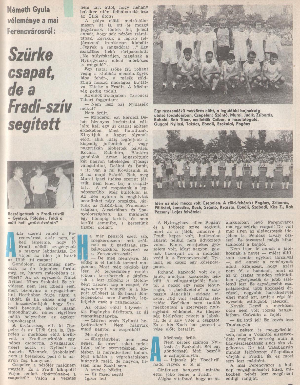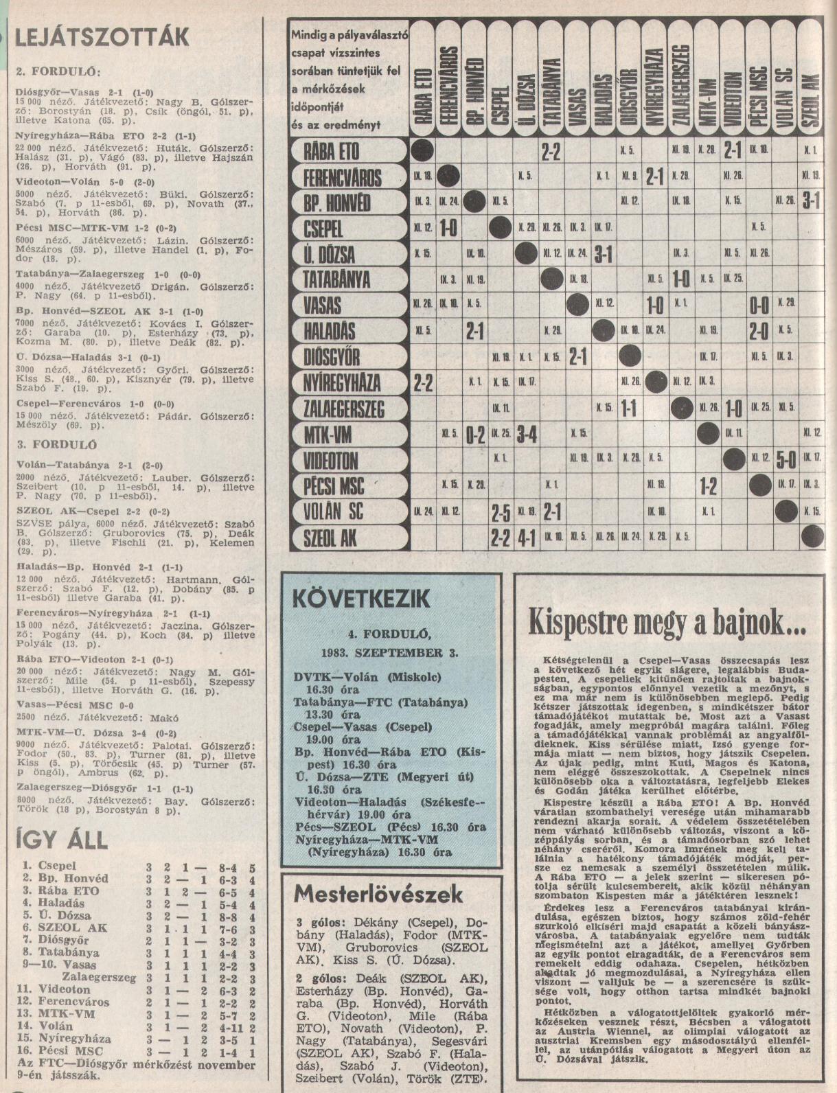 Nem volt egy boldog időszak, de amikor 1983. augusztus 27-én 2:1-re nyertünk a Nyíregyháza ellen, ebből még semmi sem látszott. Novák Dezső ült a kispadon, egész nyáron nemzetközi barátságos mérkőzésekkel készültünk, és a játékosállományunk sem volt annyira rossz: Zsiborás, Judik, Rab, Takács, Ebedli, Pogány, Koch, Bánki, Szabadi, Rubold… az persze már egy más kérdés, hogy velük hogyan is sodródhattunk a szakadék szélére.