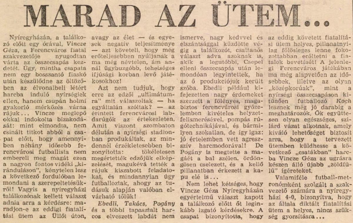 1984.III.17. Nyíregyháza – Ferencváros 0-4