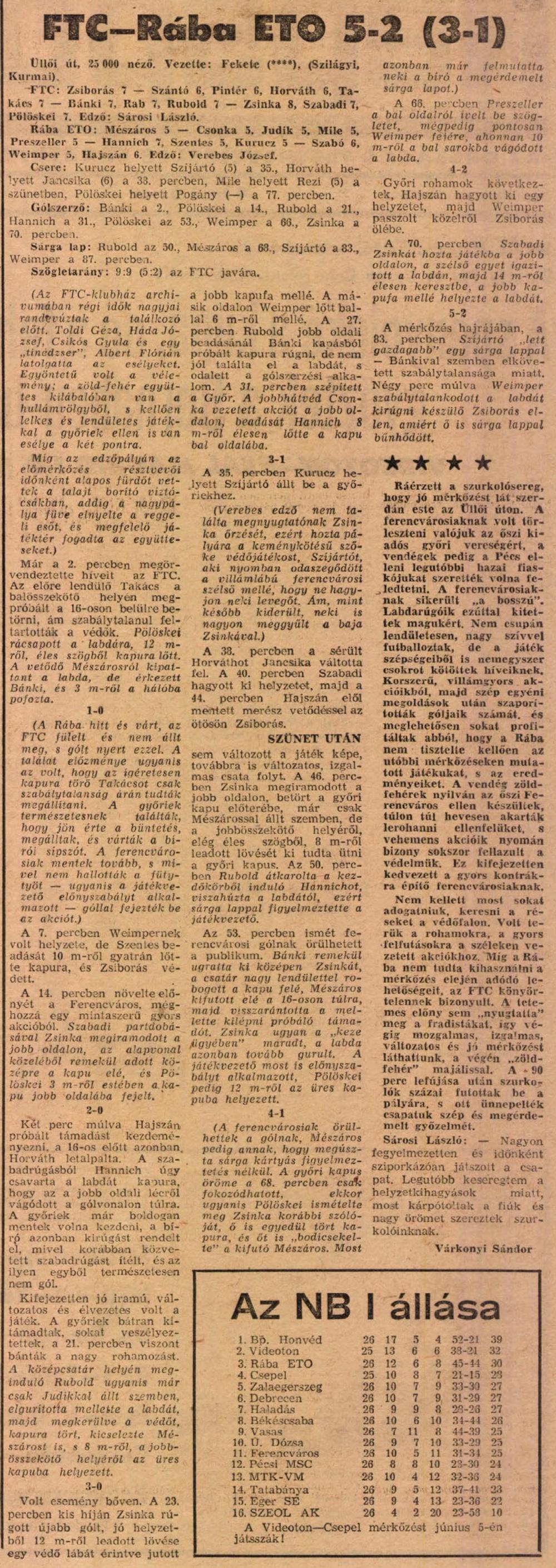 1985.V.22. Ferencváros – Rába ETO 5-2