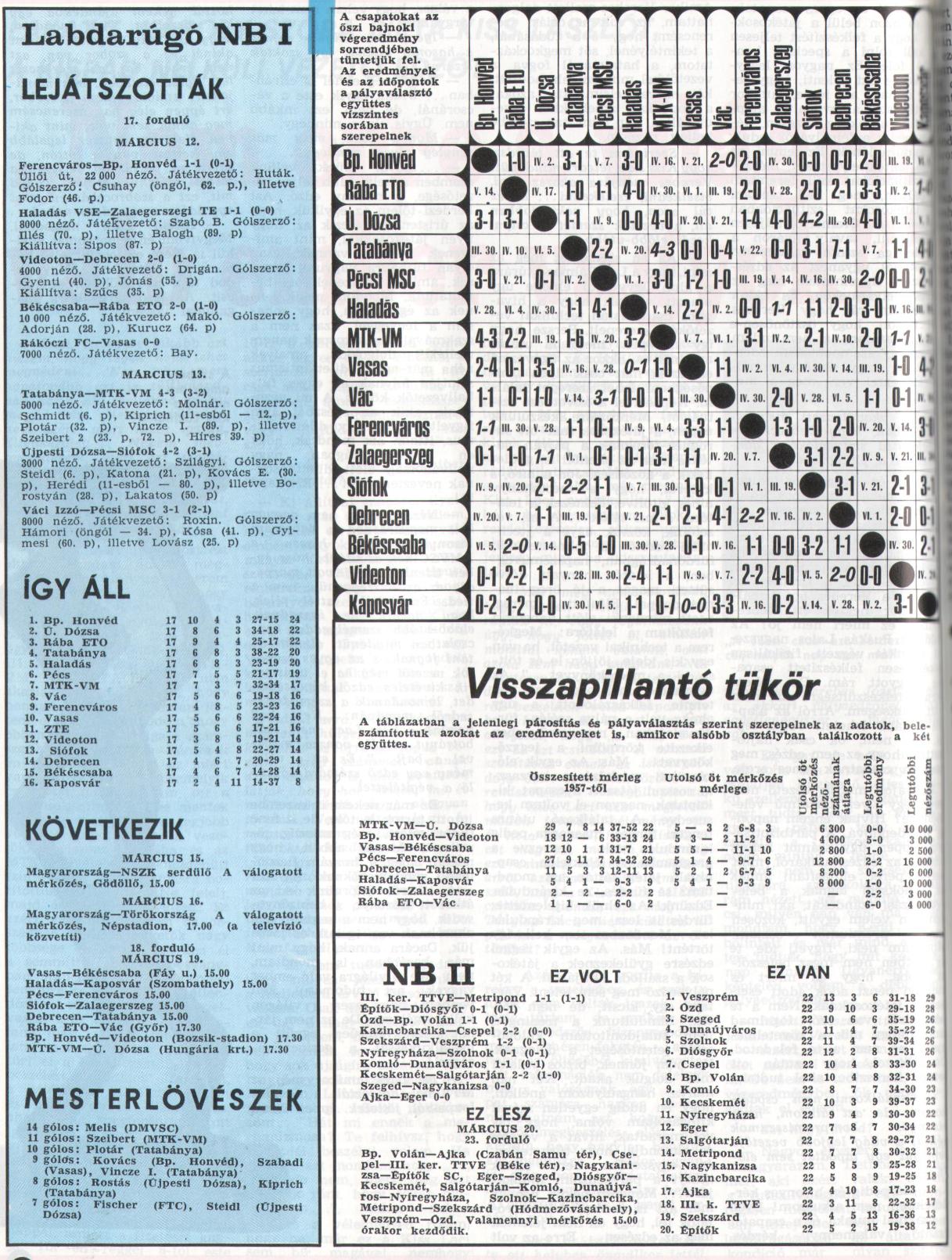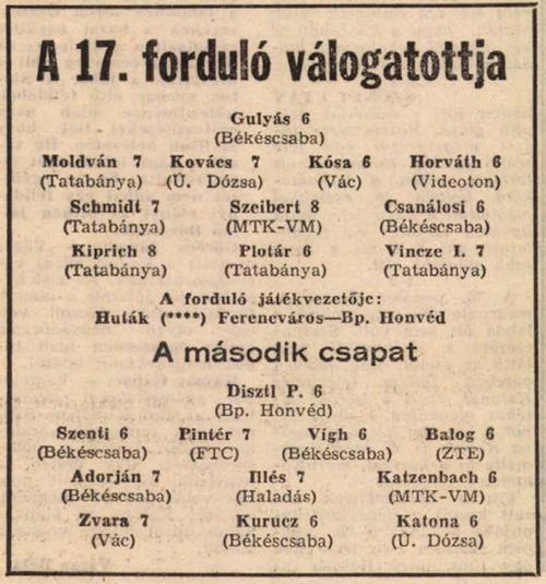 8 gólos: Rostás (Ú. Dózsa), Kiprich (Tatabánya)