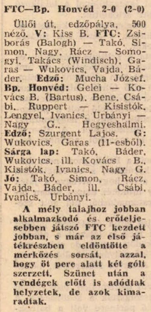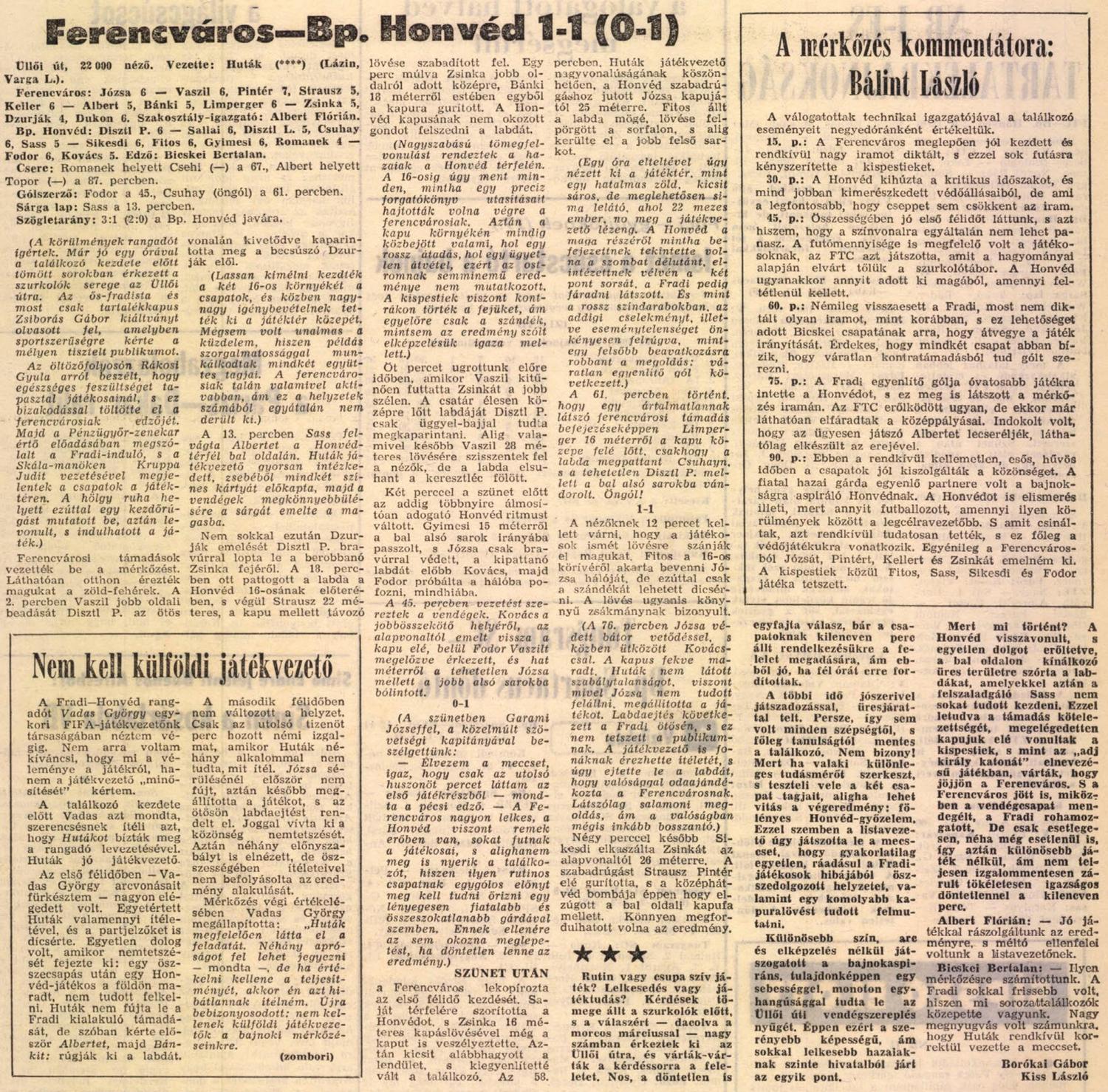 Bp. Honvéd – Ferencváros 1:1 (1:0)