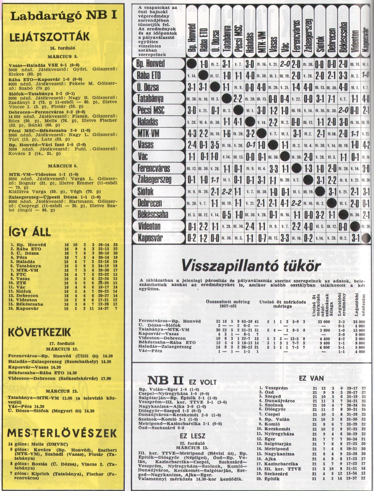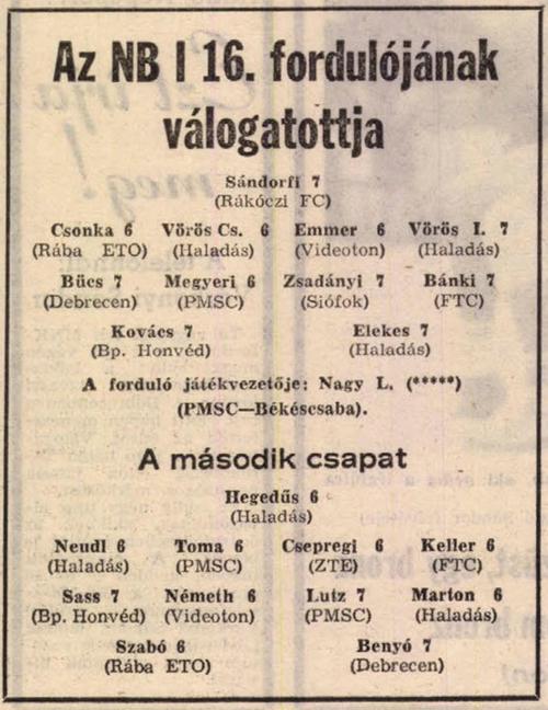 8 gólos: Rostás (U. Dózsa), Vincze I. (Tatabánya)