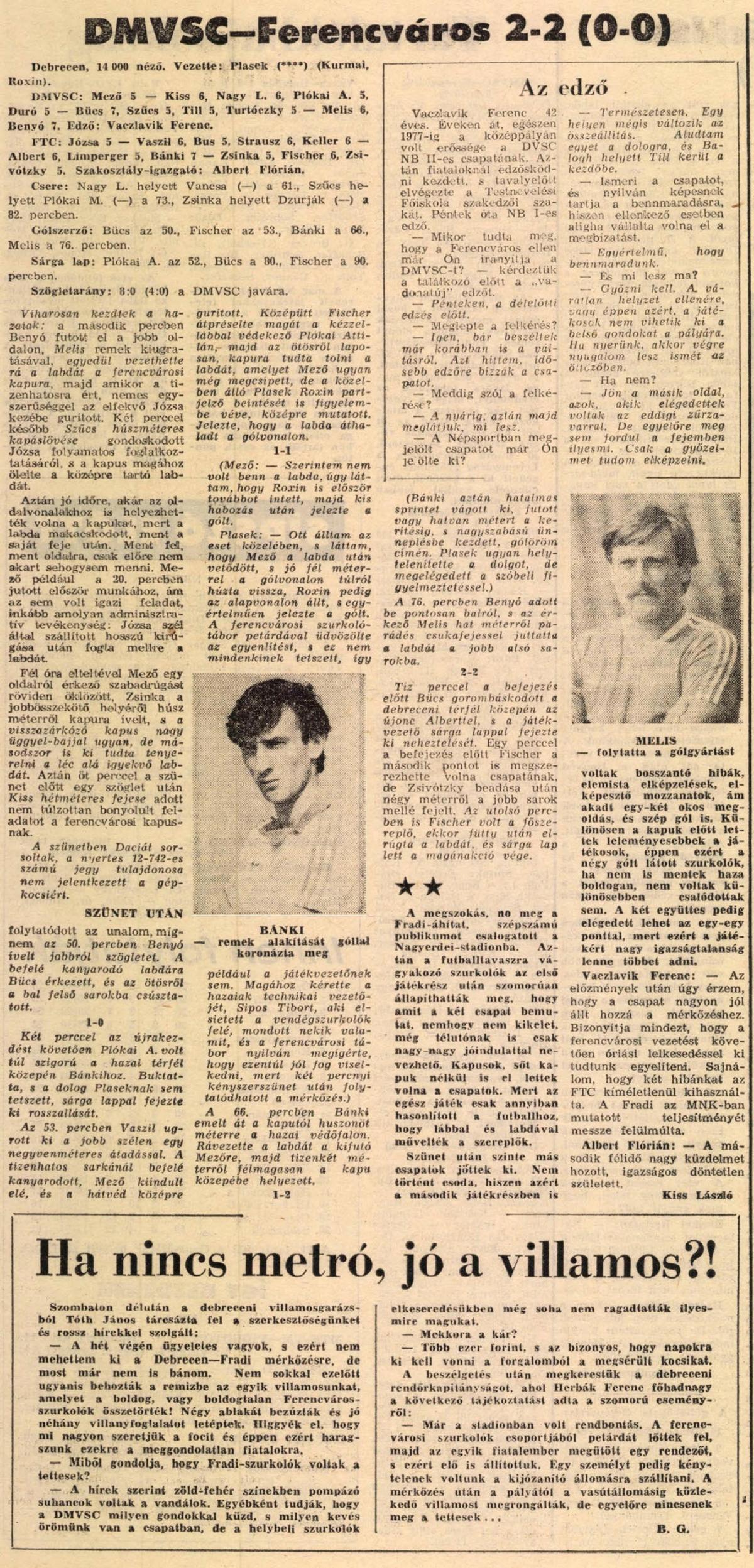 Jók: Duró, Bücs, Benyó, Melis illetve Keller, Strausz, Bánki, Fischer