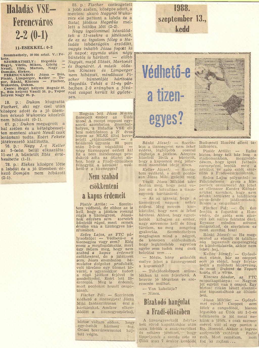 1988.IX.10. Haladás – Ferencváros 2-2