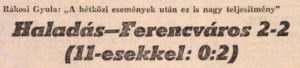 A 11-es rugásoknál Józsa játszotta a főszerepet, amikor a szombathelyi játékosok büntetőit háritotta. Igy a Ferencvárosnak sikerült ezen a találkozón két pontot szerezni. Az első félidő igen változatos, izgalmas, küzdelmes mérkőzést hozott. Szünet után kissé esett a játék irama, és a 2:2-es végeredmény hüen tükrözte ezt.