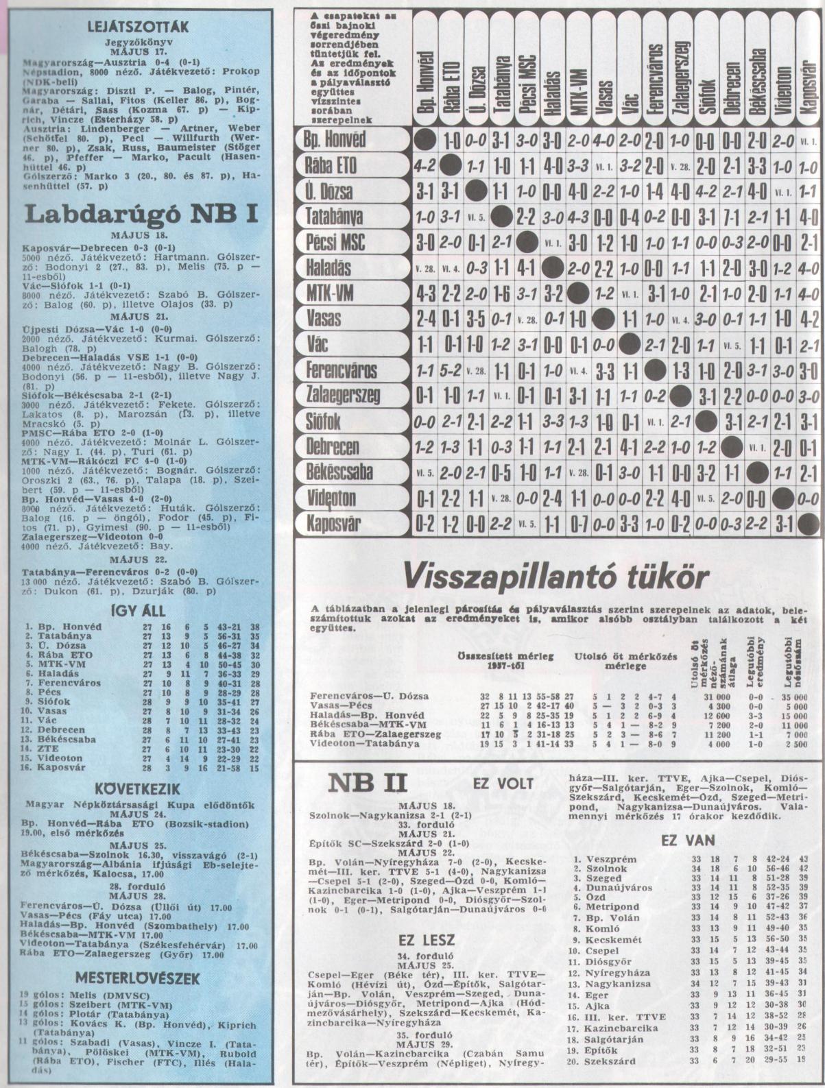 13 gólos: Kovács K. (Bp. Honvéd), Kiprich (Tatabánya)