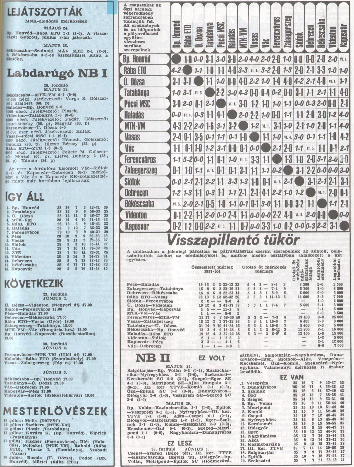 10 gólos: Rostás (Ú. Dózsa), Fodor (Bp. Honvéd), Mörtel (Rába ETO)
