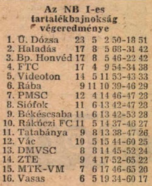 1. Bp. Honvéd 28 16 7 5 43-21 39 pont